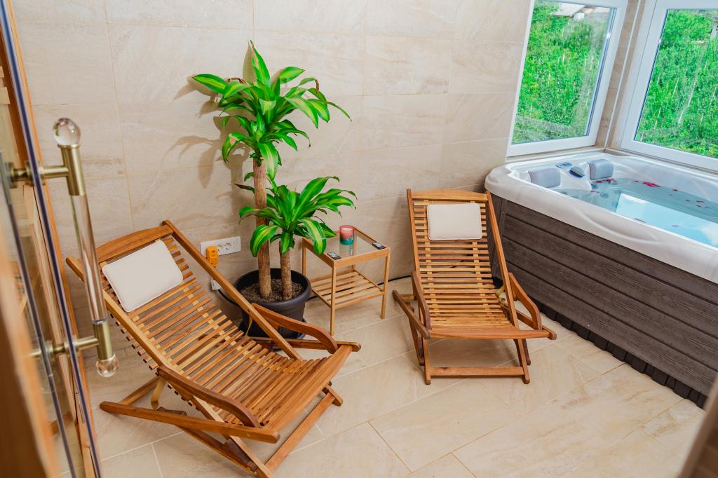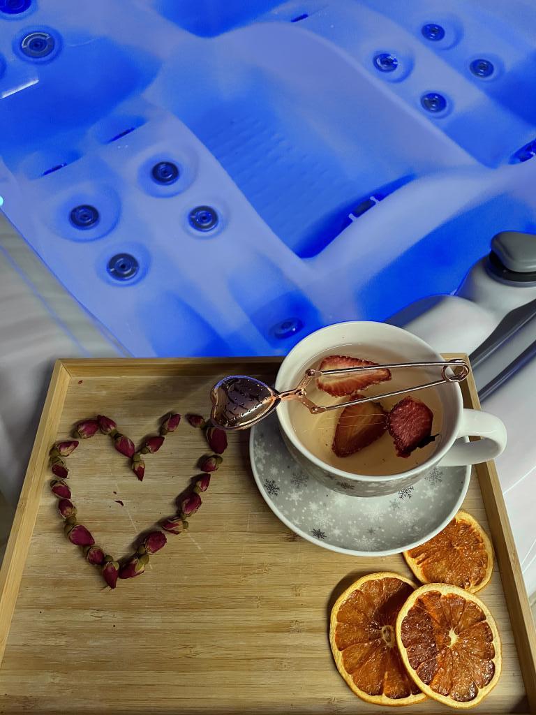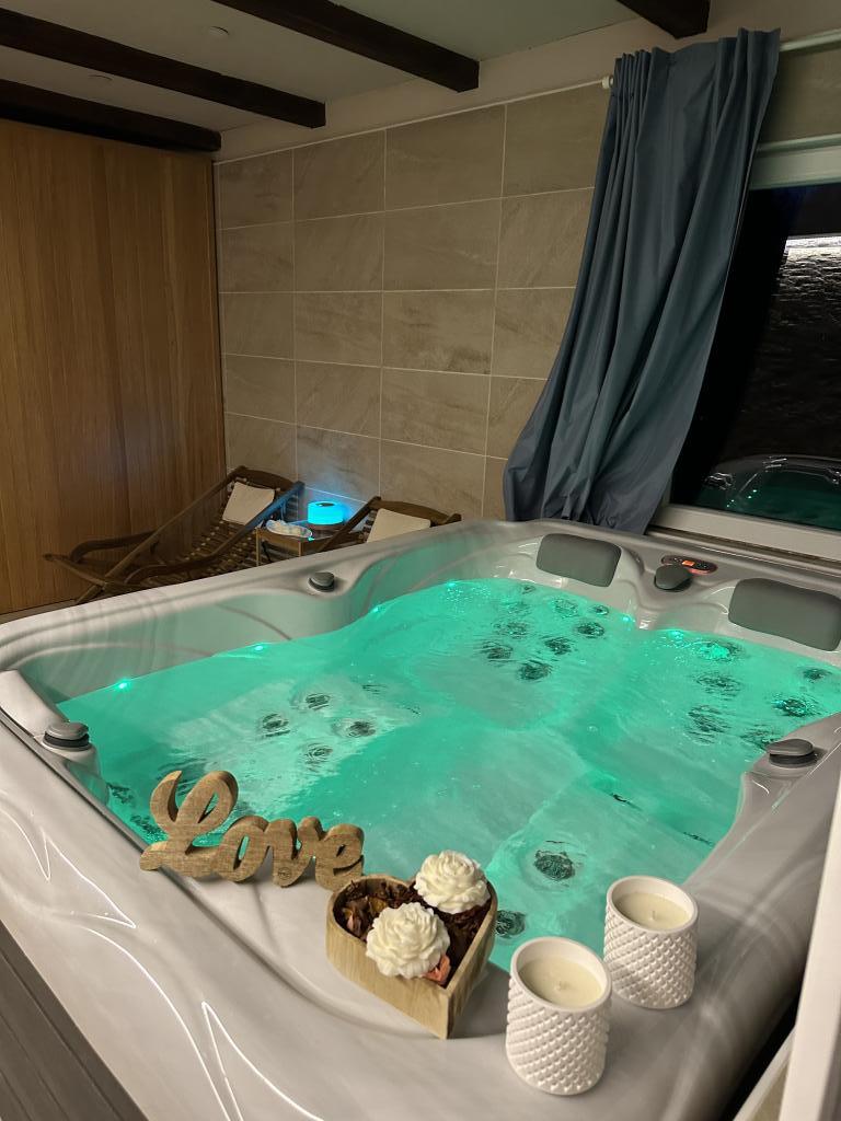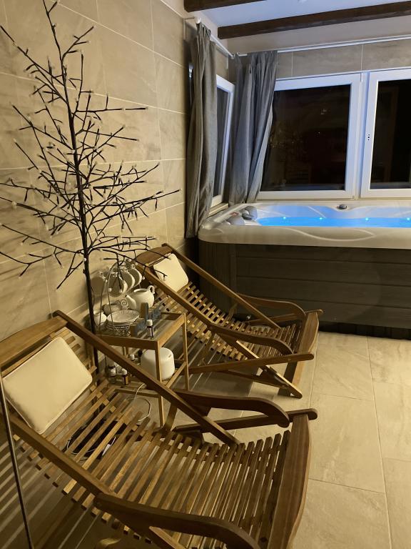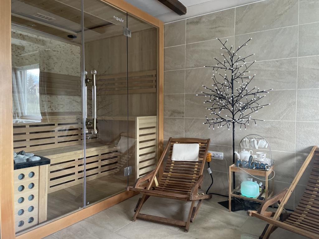 Residential tax is included in price.holiday house house for small celebrations spa center mini wellness jacuzzi Finnish sauna covered terrace relax zone relax lounge chairs walks in the forest