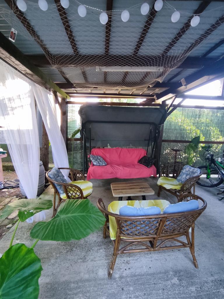 Apartment furnished in Slavonic style, modernized, functional, surrounded by trees and streams in the village of Velika podno Papuka. The kitchen is equipped with appliances and dishes for preparing and serving food. In the bedroom there is a large double, hand-made, oak bed, as well as a double wardrobe, a bedside table and a makeup table with a mirror. In the spacious living room there is a leather three-seater and two-seater and a smart TV with access to the terrace with garden furniture. The bathroom has underfloor heating, a shower and a washing machine. At your disposal is a yard with a canopy and a large table with benches, a barbecue, a children's playground, and a trampoline. Behind the building is a stream where you can fish or refresh yourself on hot days. The apartment is located near the nature park, adrenaline park, aqua park, forest and vineyard. It is 300 m from the restaurant, 1000 m from the store and gas station.