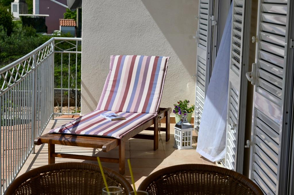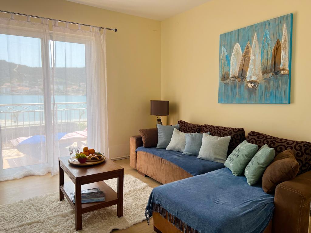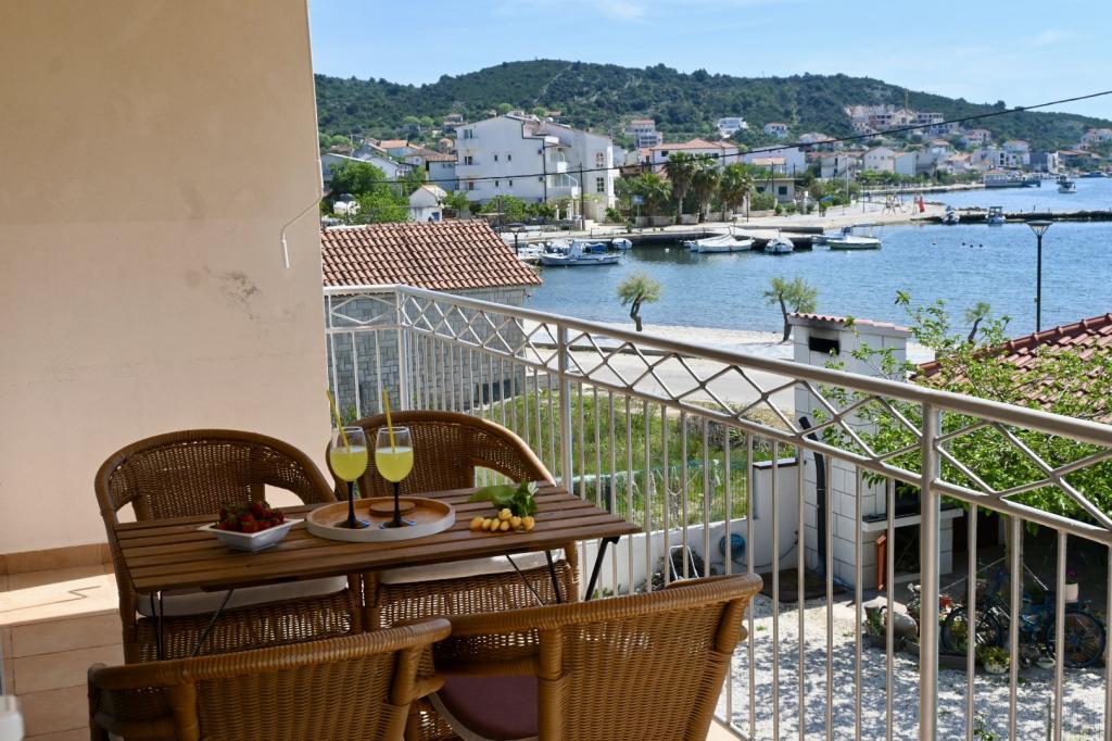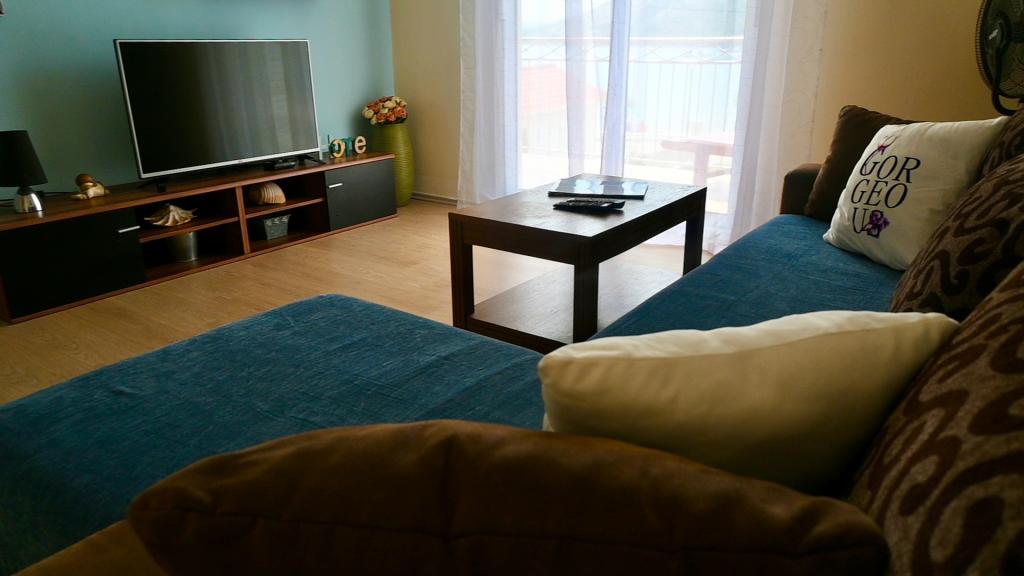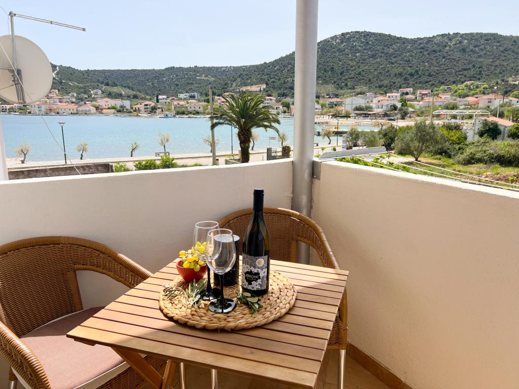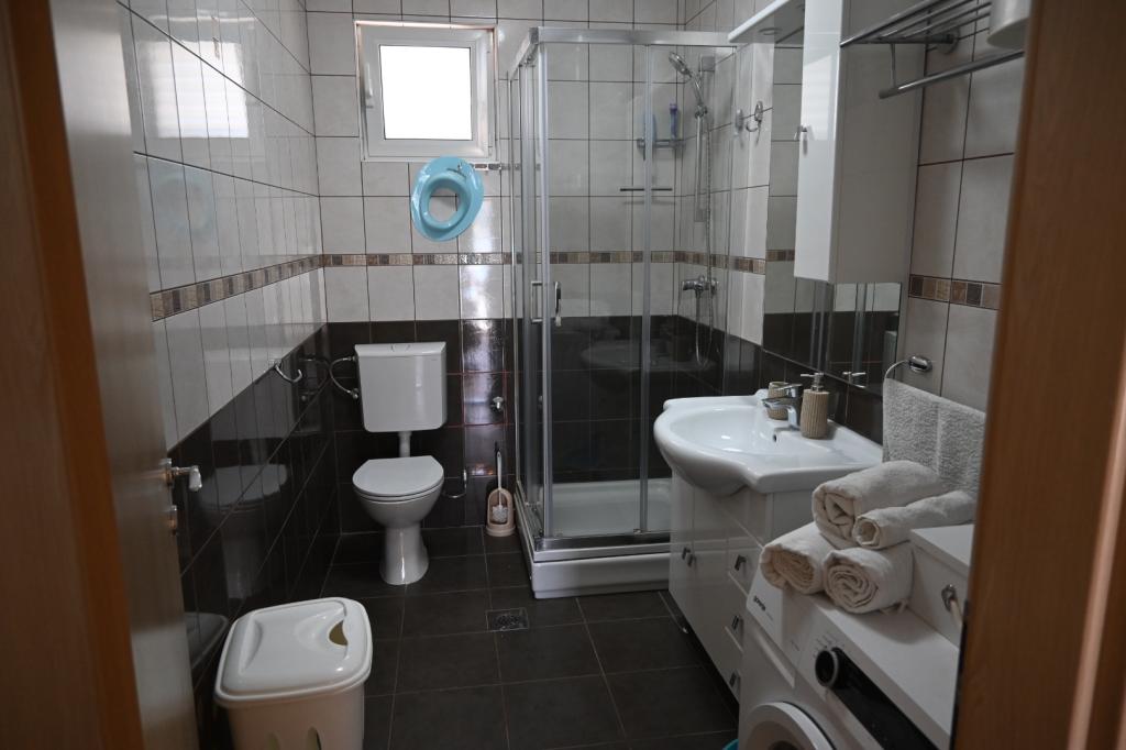 Apartment Leonora is located right next to the beach, first row to the sea, in the very center of a small fishing village. It is located on the first floor of a family house with a large yard. In front of the house there is a well-kept gravel beach that is ideal for families with children. The apartment is air-conditioned, with its own parking lot and the possibility of using a grill and a solar shower in front of the house. It consists of two bedrooms, a large living room with a corner sofa that can be opened and used for sleeping, a spacious kitchen with a dining room and a bathroom. There is also the possibility of installing an extra bed, as well as a cot by prior agreement. On the south side, it faces the sea, and the entire length of the prosthesis is covered with a terrace that allows you to enjoy a beautiful view of the entire bay. All necessary facilities are no more than 50 meters away from the house (bakery, cafes, restaurants, tourist agency, ATM). The apartment is prepared depending on the guests and we want every guest to feel at home.