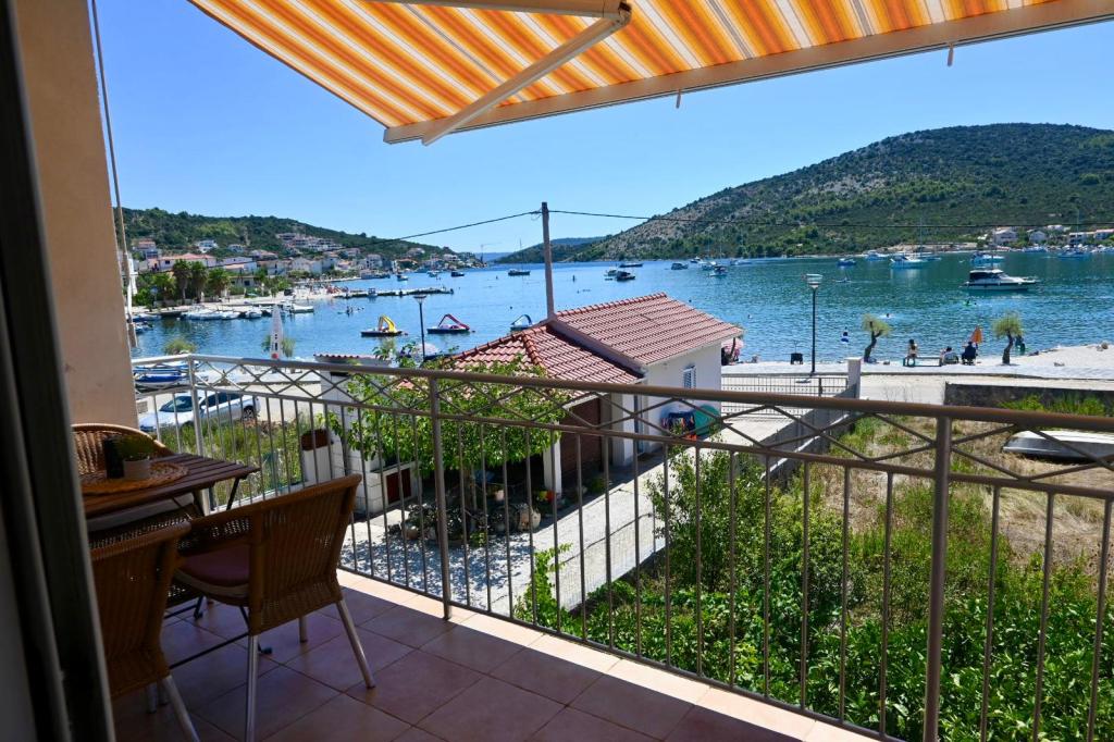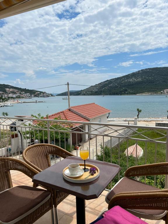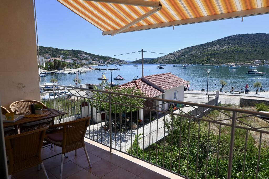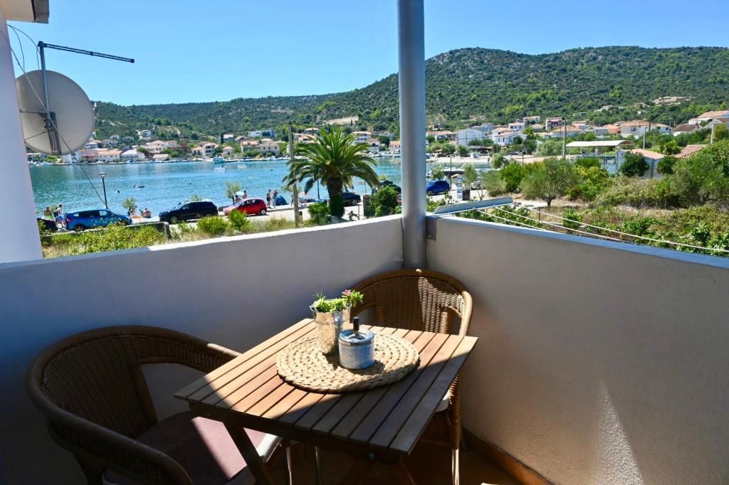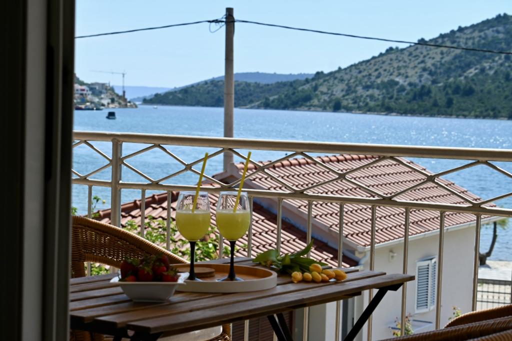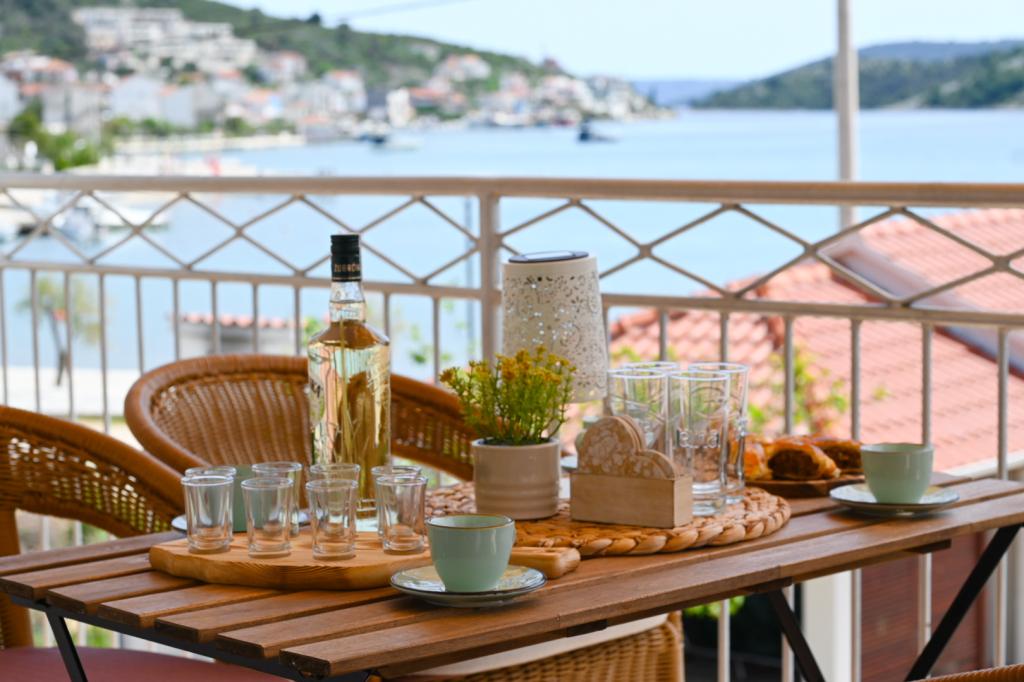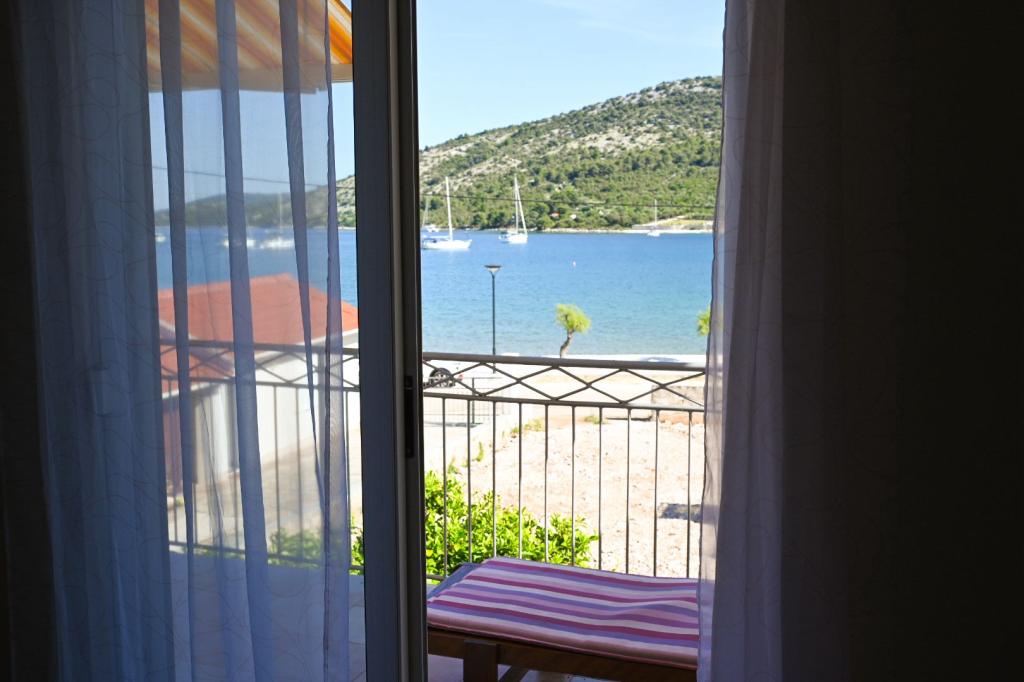 Apartment Leonora is located right next to the beach, first row to the sea, in the very center of a small fishing village. It is located on the first floor of a family house with a large yard. In front of the house there is a well-kept gravel beach that is ideal for families with children. The apartment is air-conditioned, with its own parking lot and the possibility of using a grill and a solar shower in front of the house. It consists of two bedrooms, a large living room with a corner sofa that can be opened and used for sleeping, a spacious kitchen with a dining room and a bathroom. There is also the possibility of installing an extra bed, as well as a cot by prior agreement. On the south side, it faces the sea, and the entire length of the prosthesis is covered with a terrace that allows you to enjoy a beautiful view of the entire bay. All necessary facilities are no more than 50 meters away from the house (bakery, cafes, restaurants, tourist agency, ATM). The apartment is prepared depending on the guests and we want every guest to feel at home.