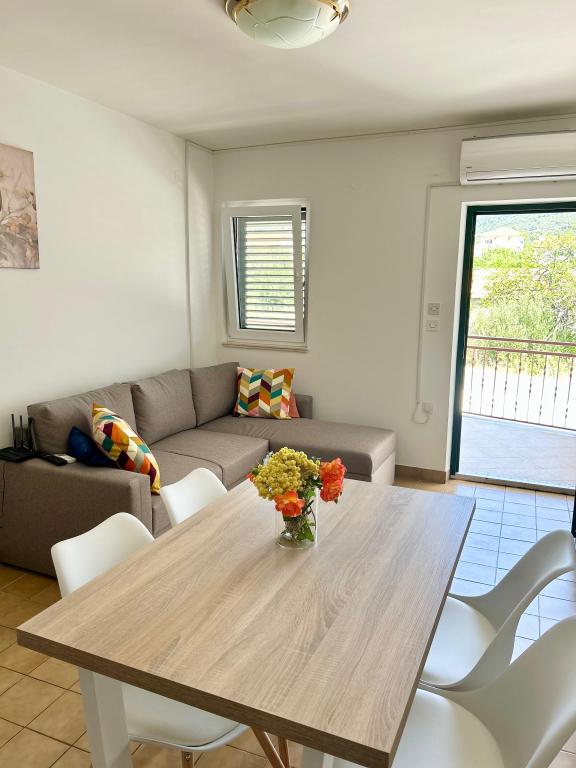 Three Palms Apartments are situated in the center of the bay and Vinisce on the beach literally a dozen steps from the sea and pebble beach, which gently goes to the depths of the crystal blue sea, so I enter very easy for children, the elderly and the disabled. They are equipped complete with everything needed for a longer and more relaxed holiday, in order to feel at home. Very large entrance courtyard provides opportunities for outdoor living inside the building, and fun, as adults, and children. Parking your car is also provided in front of the apartment. Apartments 2 and 5 are suitable for disabled people stay because they are on the ground, while others on the floor. Apartment No. 1 is characterized by terraces of 12 square meters with beautiful nature. All guests can use barbecue.