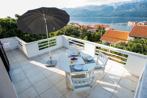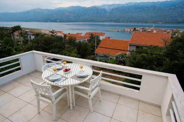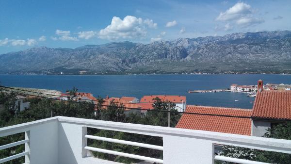 This year restored house-roofing and facades with excellent thermal insulation, is located in a quiet area Vinjerca, surrounded by greenery, located about 100 m from the sea. The apartment is on the first floor. From the spacious terrace, there is a beautiful view of the town, the harbor, the sea. The view stretches several kilometers to the east and west, to a large part of the Velebit Channel, and of course the very Velebit mountain. The apartment has a large living room within which is a part of the dining area and fully equipped kitchen. The room has a TV camera with a host of local and satellite channels, spacious sofa, which is an extra bed for a third person. In the bedroom is a large double bed 180 x 200 cm, wardrobe, large mirror, small dresser. In a small bathroom with a toilet is all you need. The whole house has free Wi-Fi connection to the Internet. In addition to or in the vicinity of the house is parking. Sports fans can at nearby roads to ride a bike, mountain bike, with a bridge jump, bungee jumping and the Paklenici- free climing.