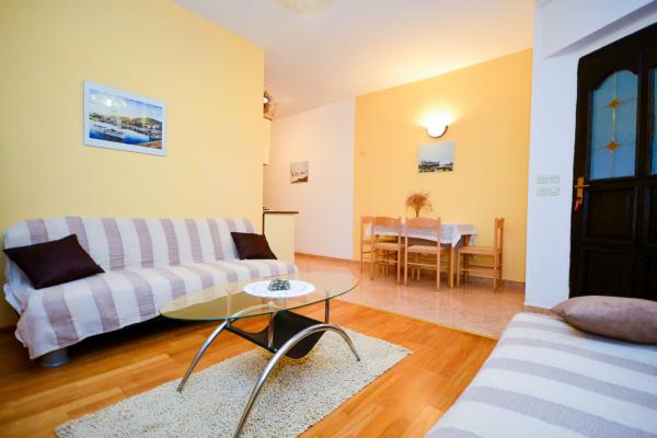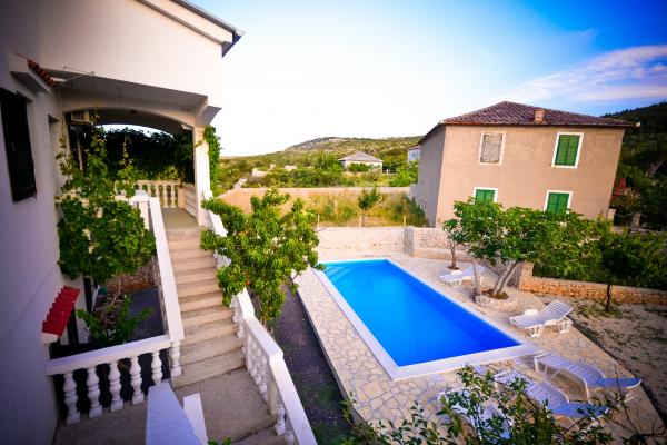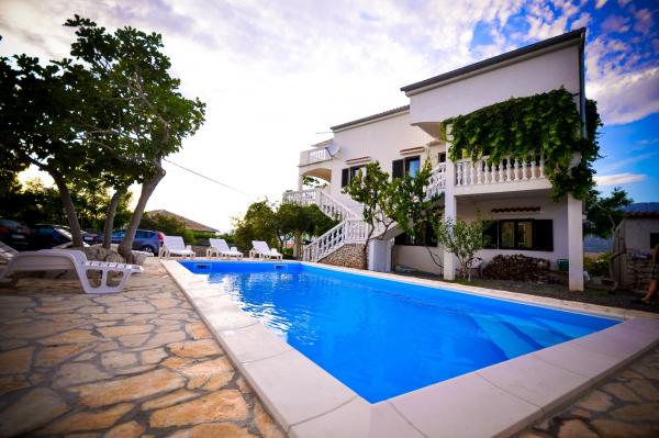 The house is of recent date, with a newly refurbished large yard and parking space, consisting of 6 fully furnished apartments with beautiful and unobstructed view of the Velebit and the Velebit Channel. A luxurious swimming pool is situated in the courtyard as well as a large grill that is available to all guests. An ideal place if you really want to get away from city crowds, while being very close to the same as the number of national parks and nature parks (Kornati, Paklenica, Krka, Plitvice Lakes). Close to several beaches in just a few minutes walk and center so you can forget about the car. For any inquiries friendly hosts are always available. With great pride, which also brings great responsibility we like to note that over 70% of guests coming back to our apartments. Send request and book your ideal holiday as soon as possible. We wish you a pleasant holiday and see you!