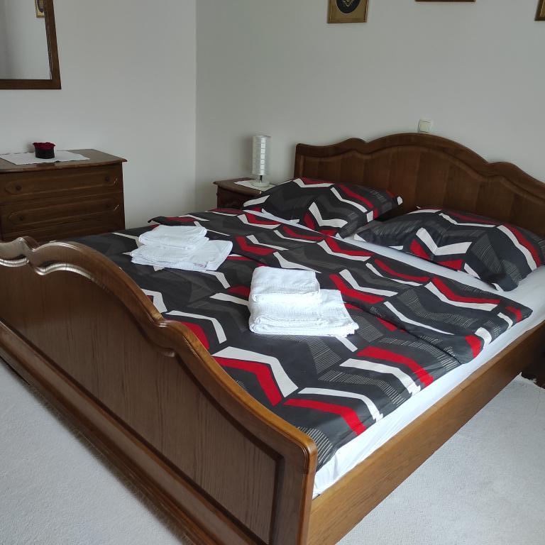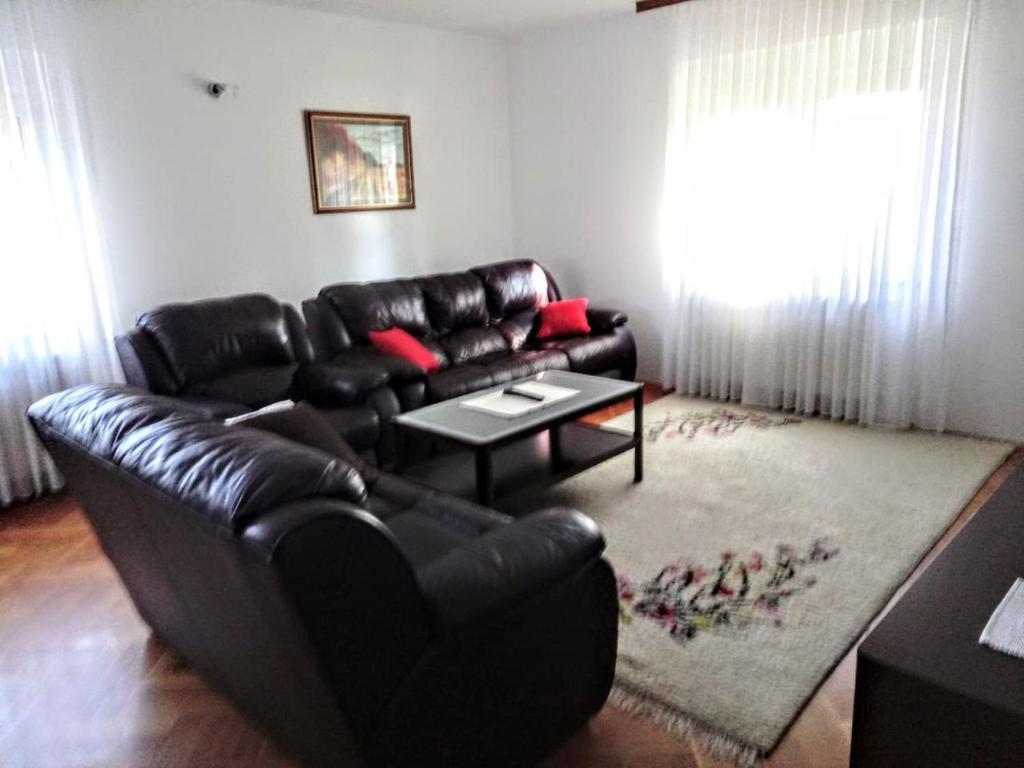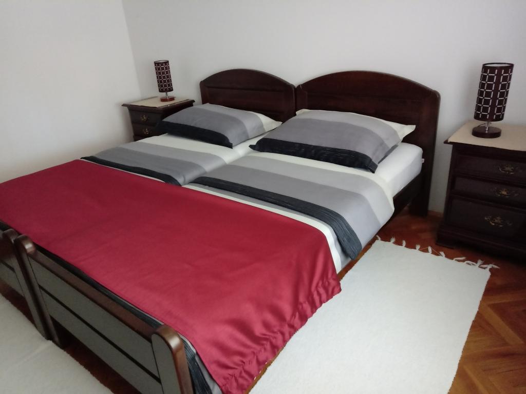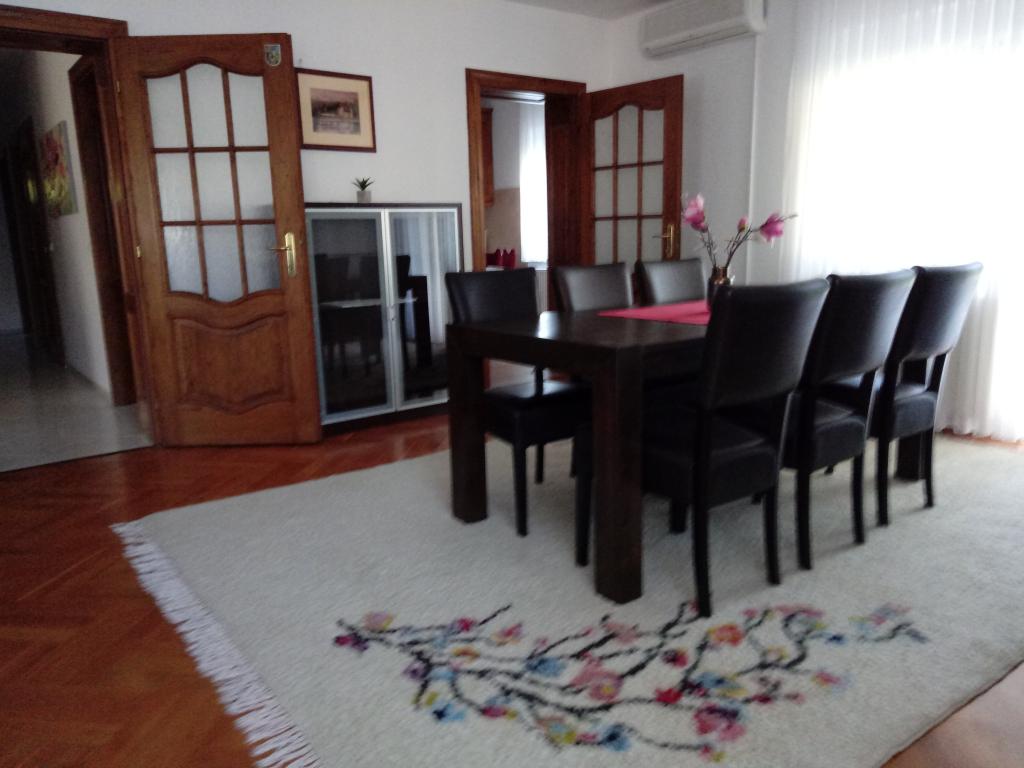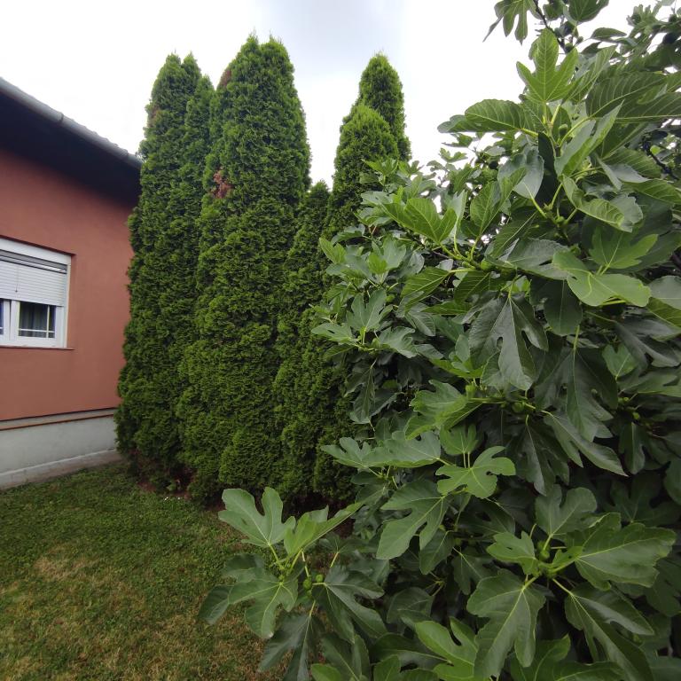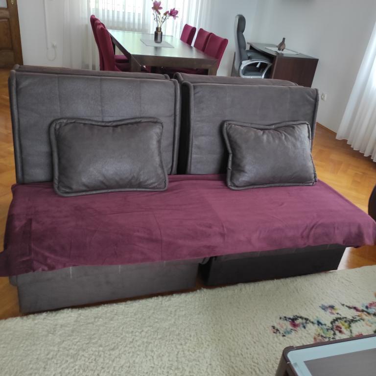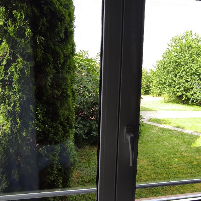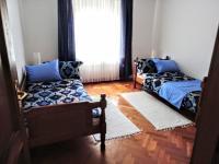 Holiday house Ruža Vinkovci is a one-story house with an area of approx. 140 m2, just a 10-minute walk to the center of Vinkovci and Vinkovačka lampa. It is spacious with lots of natural light in a quiet street and a peaceful neighborhood with a large green garden and an orchard of approx. 1300 m2 and a wonderful view from the terrace, which is accessed from the large living room of 40 m2. Guests who have stayed in the house so far say that it is an oasis of peace where you can take a break from everyday hustle and bustle. The house has three spacious bedrooms (one room with a double bed and its own bathroom and two rooms with two beds for one person and another large bathroom. The kitchen of 12 m2 with new household appliances is separate from the living room and also has direct access to the terrace. The house is quality built with oak interior carpentry and parquet floors, while the exterior carpentry is plastic. The house has central heating and air conditioning in the living room. You can park in the spacious yard or in the garage.