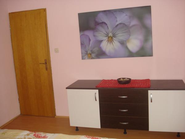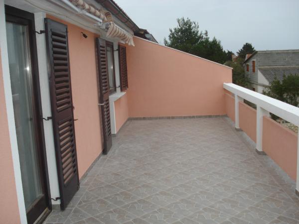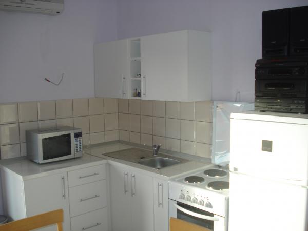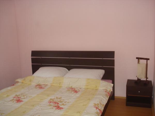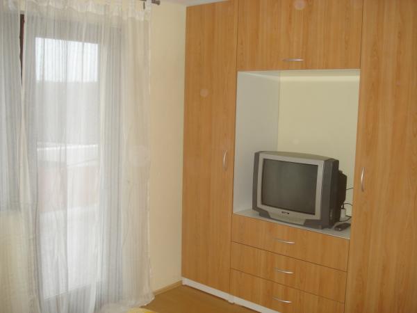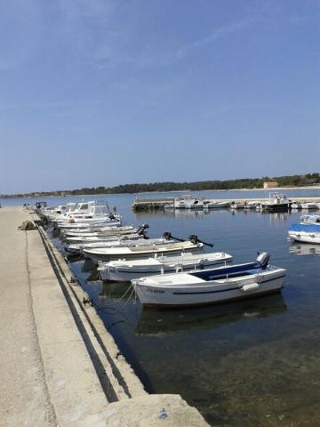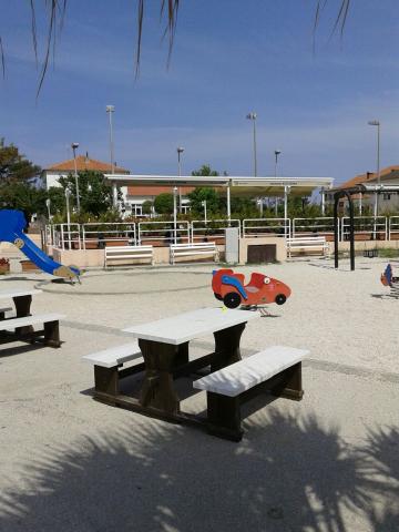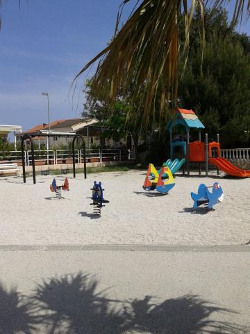 Modern apartments only five minutes from the center and about 10 from the sea for 4-6 people, 3 bedrooms, (2 with double bed and one with bunk bed), bathroom, living room, dining room and kitchen, air conditioning, TV, 20 m2 terrace, parking space in a fenced yard. Barbecue. Beach partly concrete and partly gravel, sandy bottom of the sea.