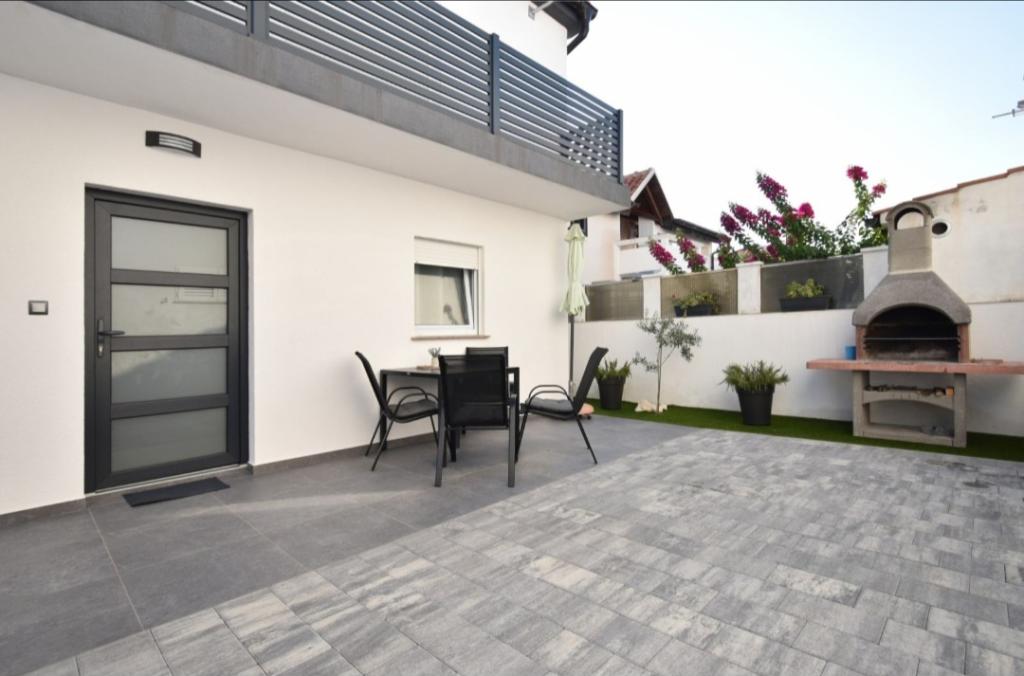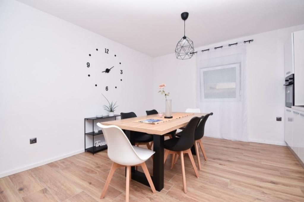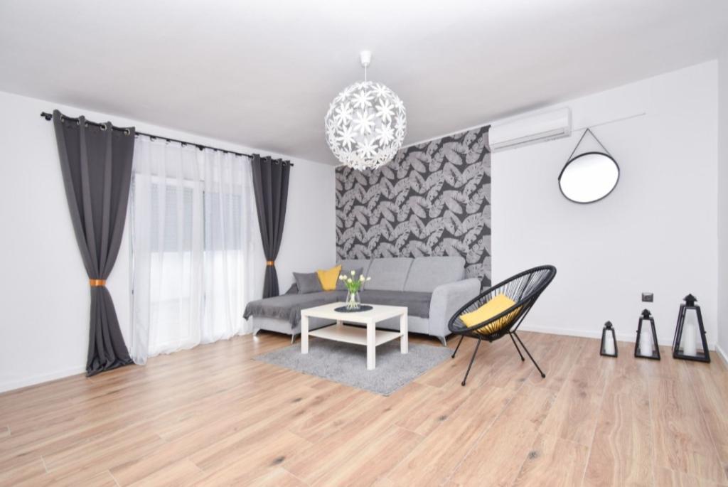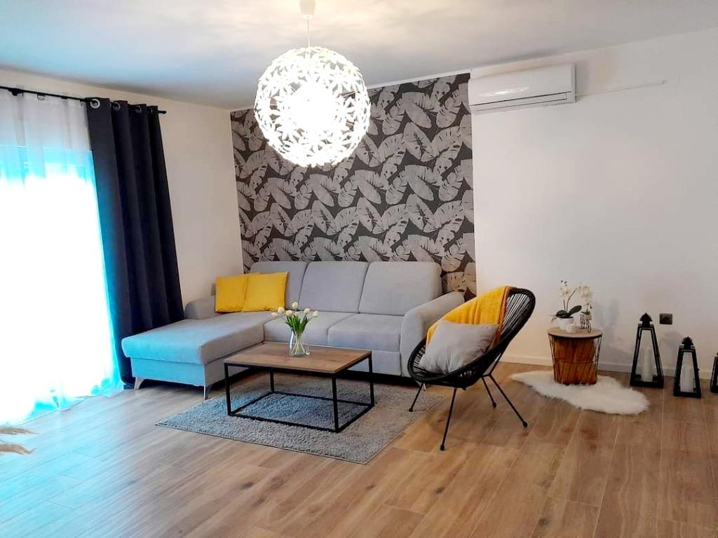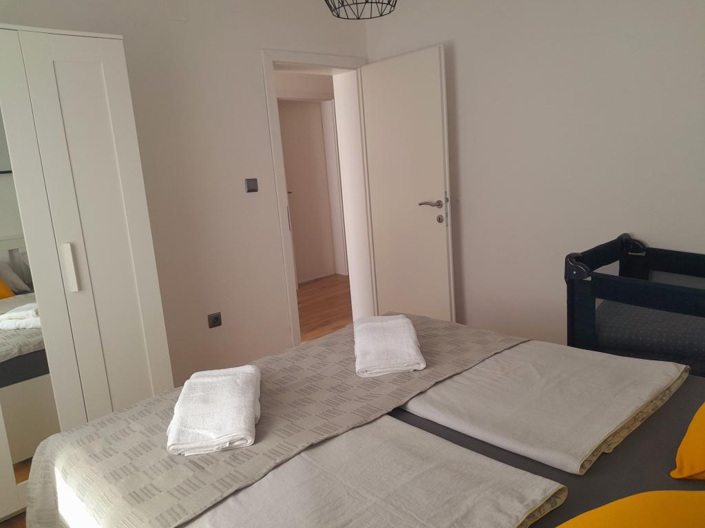 Fully and modernly equipped ground floor apartment 90m2 in a quiet area. Located second row from the sea, 40 meters from the beautiful beach and promenade along the sea. Restaurants, bakeries and shops are within 50 meters. The kitchen is equipped with all appliances from dishwasher, oven, electric hob and kettle. Free WiFi and air conditioning. Each guest gets 2 towels to use. Also, if you have a small baby, there is a cot in the room.