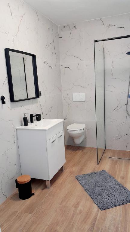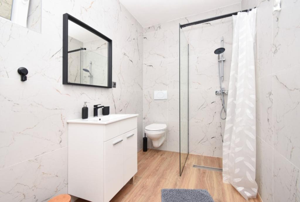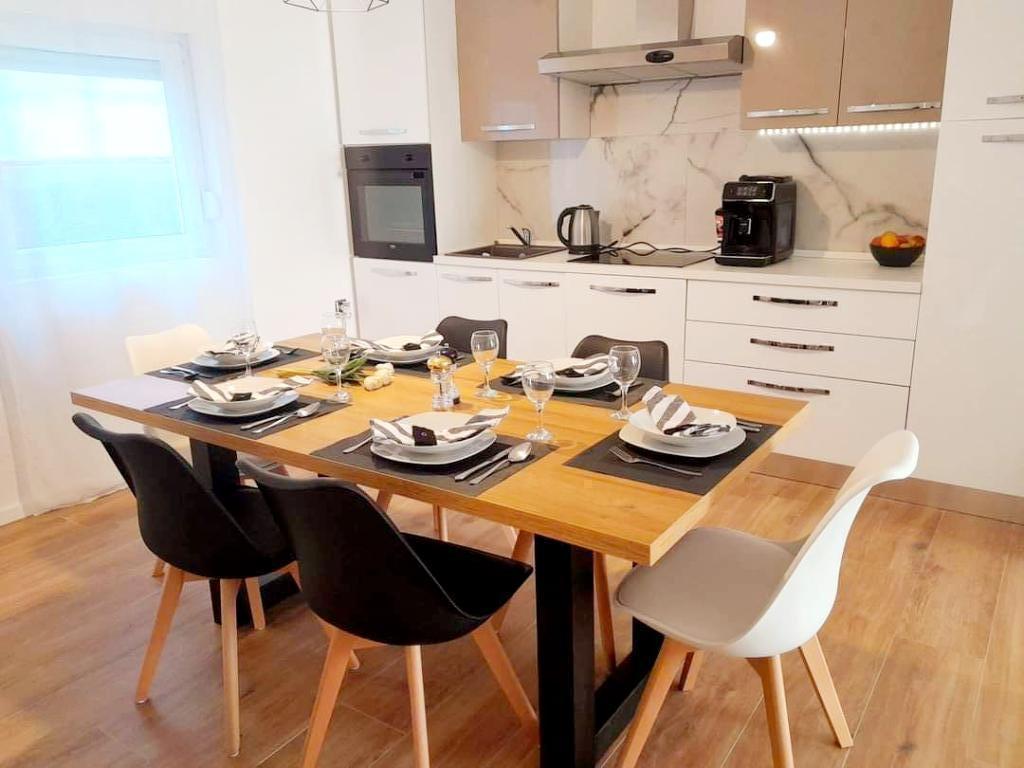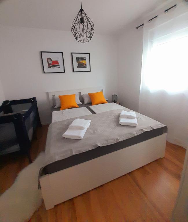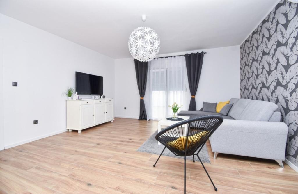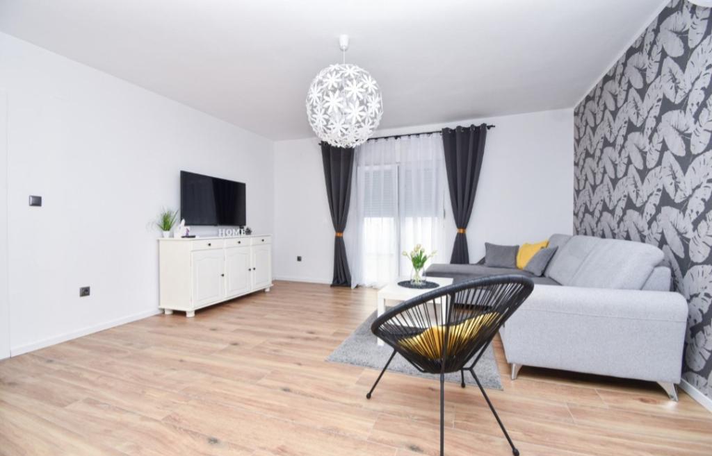Fully and modernly equipped ground floor apartment 90m2 in a quiet area. Located second row from the sea, 40 meters from the beautiful beach and promenade along the sea. Restaurants, bakeries and shops are within 50 meters. The kitchen is equipped with all appliances from dishwasher, oven, electric hob and kettle. Free WiFi and air conditioning. Each guest gets 2 towels to use. Also, if you have a small baby, there is a cot in the room.