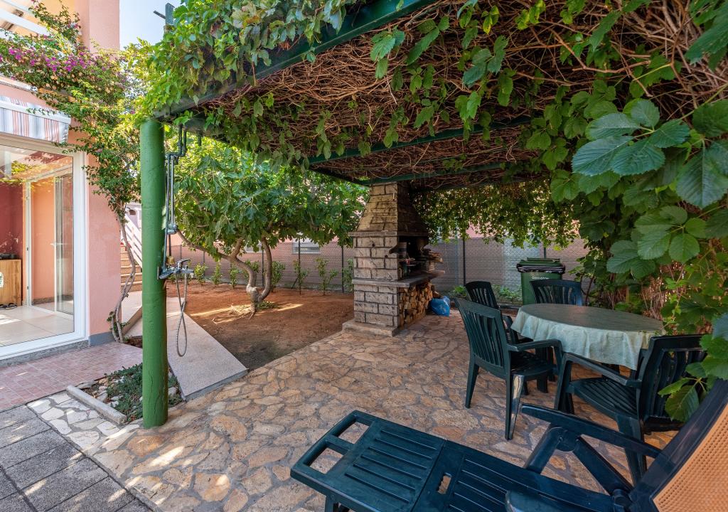 The apartment is located in a quiet street on the island of Vir. The distance to the beach is a five-minute easy walk. There are two beach bars, a bakery and a restaurant on the beach. The beach is sandy, ideal for children. The apartment is air-conditioned, newly renovated, with a separate entrance and a covered terrace of 20 m2. It consists of a kitchen with dining room, living room, bathroom and two bedrooms. The apartment has free WiFi and satellite programs via A1. A parking space is provided in the closed courtyard.