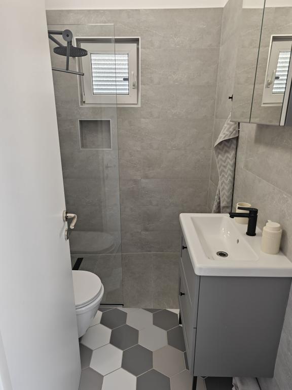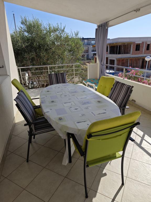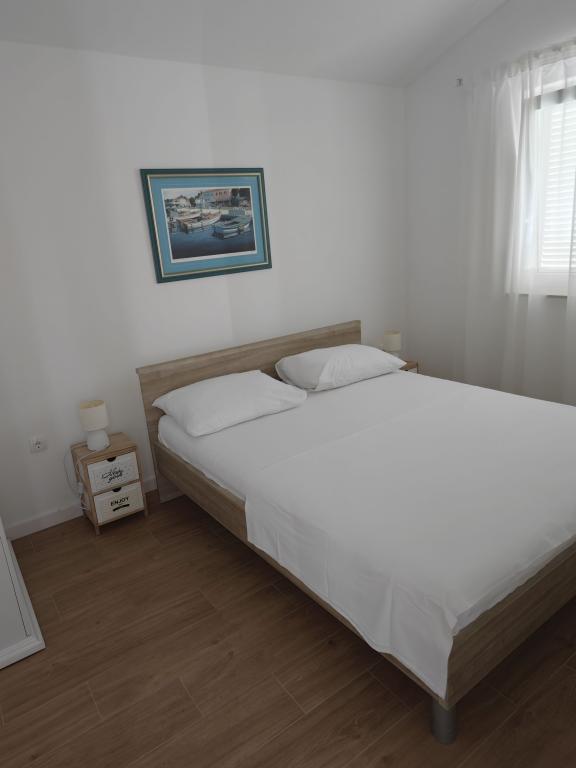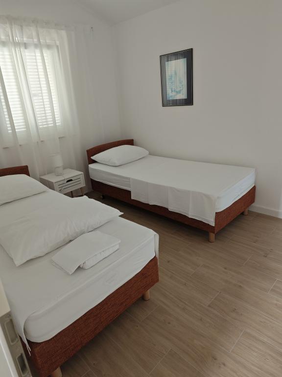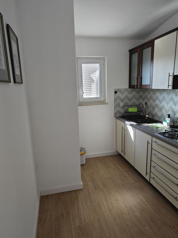 Apartment for rent in a house in a pleasant environment, first floor, separate entrance, parking in the yard. Distance from the beach 150 m. The apartment consists of two bedrooms, - one with king size bed and - another with twin beds - large living room with sofa bed, TV, air conditioning - fully equipped kitchen - bathroom with shower - large terrace of approximately 30 m2, parking space, barbecue provided with the possibility of use Newly renovated, air conditioned, for 5 people.