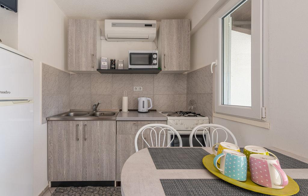 The modernly equipped apartment is located on the south side of the island of Vir, (24 km from Zadar) in a quiet street with free parking in the fenced yard in front of the apartment. There is a lot of greenery around the apartment (pine forest). It has two rooms, one room with a double bed and the other with two separate beds. The kitchen is equipped with everything for 4 people. Grill and outdoor shower is in the yard of the house, available to guests. The use of air conditioning in the apartments is included in the price. All windows have mosquito nets. It has a terrace with a covered area for a table and 4 chairs. TV, Wi-Fi free. A large supermarket is 100 meters away, and the beach is an easy 8-minute walk away, without crossing busy roads. The Vir tourist office organizes trips to Kornati, Krka National Park, Plitvice and other interesting destinations. You can also rent bicycles, speedboats and boats. A diving school is organized in the center every year. THE APARTMENT IS CONNECTED TO THE PUBLIC WATER NETWORK.
