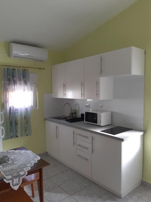 Fully equipped apartment, TV, air conditioning, wi-fi, induction hob, microwave oven, refrigerator. The apartment is on the first floor, it consists of a kitchen, a bathroom and two rooms, one with a double bed and the other with two beds, from which there is a terrace with a view of the sea. The sea and the beach are 20 meters away. We look forward to your visit and are always at your disposal for questions about reservations.