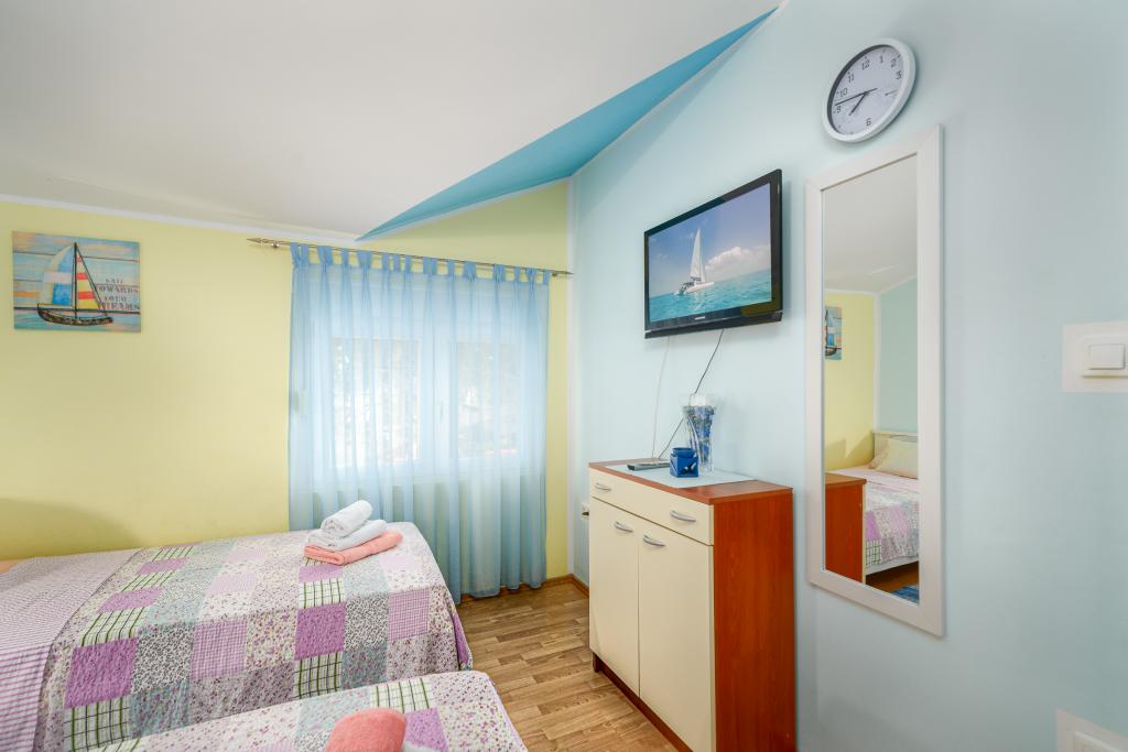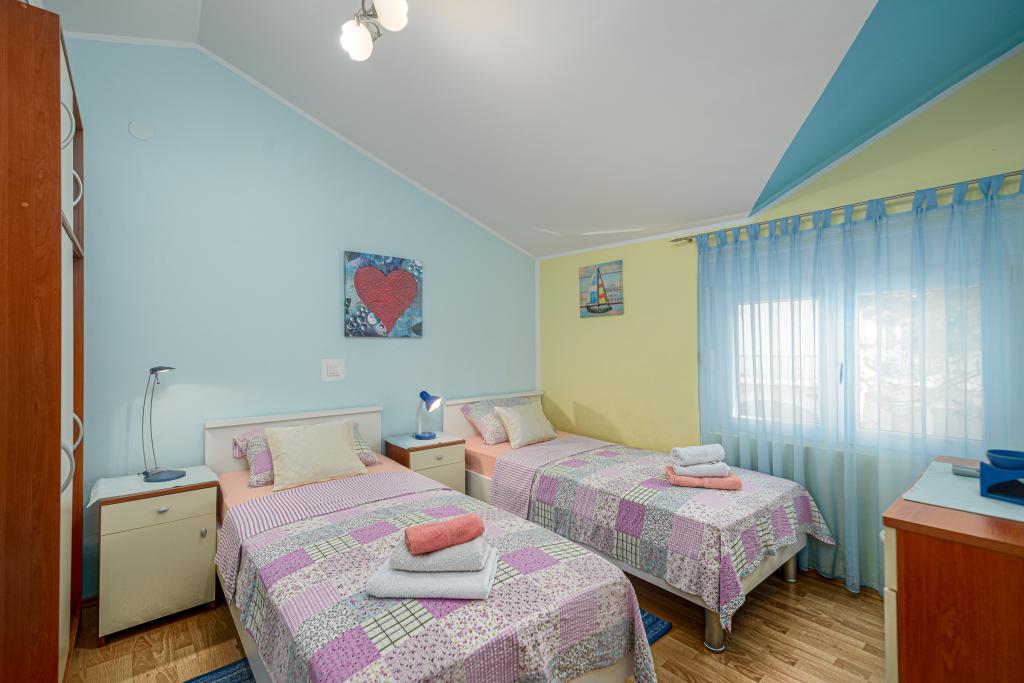 Apartment Lela is located on the first floor. The apartment has two bedrooms, two bathrooms, large living room with kitchen and dining area, and a large terrace. The beach is 100 m away from the apartment, shop also 100 meters. On the beach there is a fast food restaurant and a coffee bar. The street is quiet, traffic is only for street residents. The apartment has its own parking space in the yard, grill and its own large terrace. The beach is concrete with pebbles, and 200m away is a bay with a sandy beach. Shop and bakery is 100m from the apartment The apartment has city water. It has air conditioning and free internet access. Organized trips through the Tourist Office Vir to the Krka waterfalls, Kornati, Plitvice Lakes and other interesting destinations. Bicycle, speedboat and boat rental. Diving school. We want you to feel comfortable in your apartment in your house and that your stay in Vir will remain in your fond memories :) We look forward to your arrival