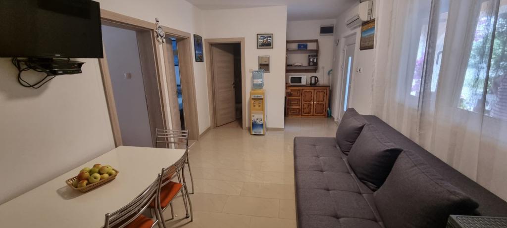 Dear guests, come to our complete and modern furnished apartment on this beautiful island near Zadar. Accommodation is located in a quiet place, away from the beach 250m. The apartment is suitable for 4-5 persons. Guests have access to a terrace, satellite TV, wi-fi, air, fire, water, barbecue, outdoor shower, bicycles, bed linen, towels, parking. Bikes can go around the island and get to know its beauty. The beach has a sandbox where you can play your children while you enjoy the shade.