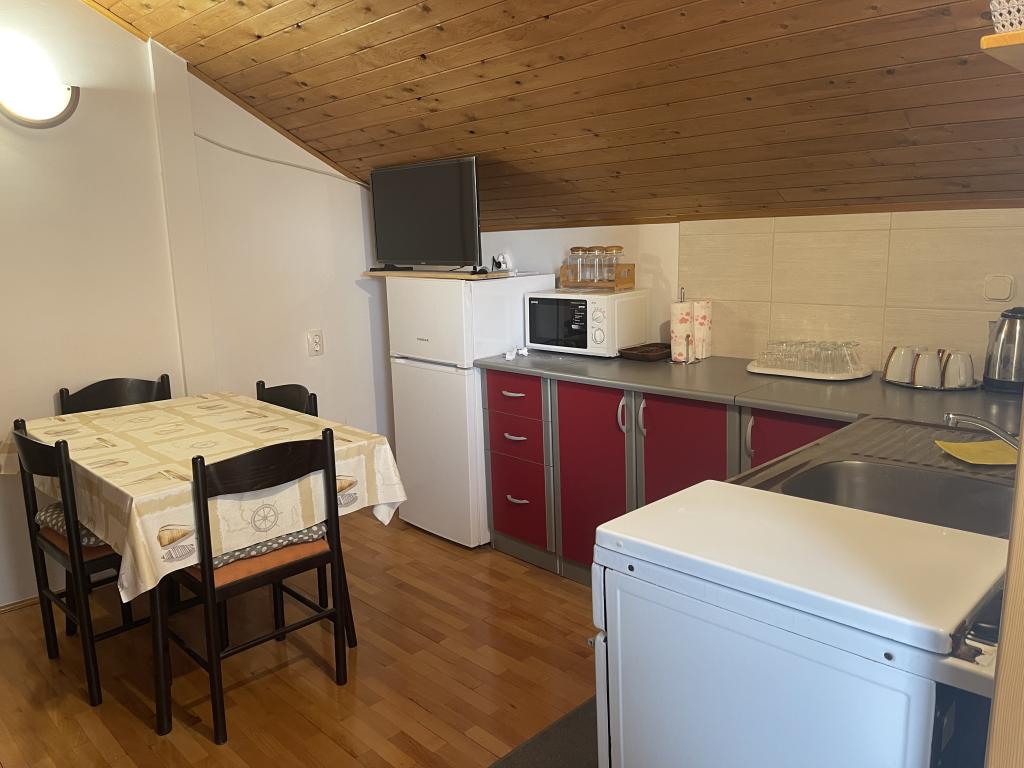 Apartment on the first floor (ground floor), with a separate entrance in a holiday home on the island of Vir, about 100-150 m from the beach, 70 m from the nearest shop and restaurant. The apartment has a separate bedroom with a double bed, a living room with a kitchen where you can put an extra bed for two people, a bathroom and a terrace of about 15 m2. There is a parking space in front of the building.