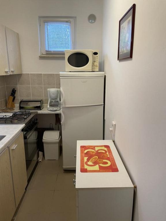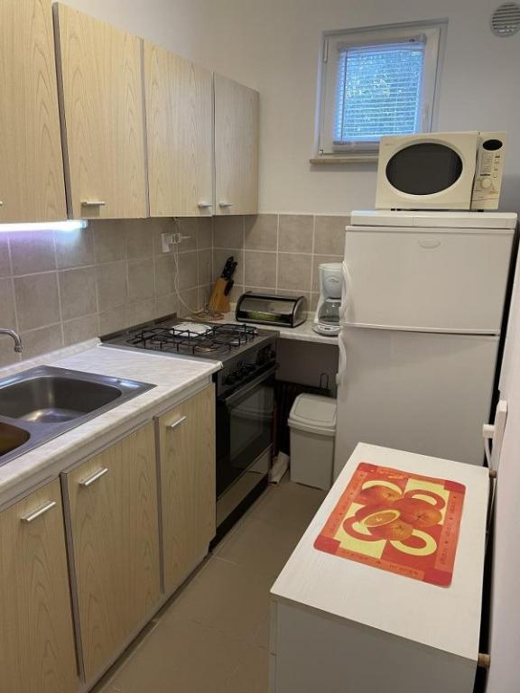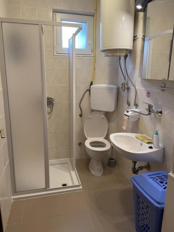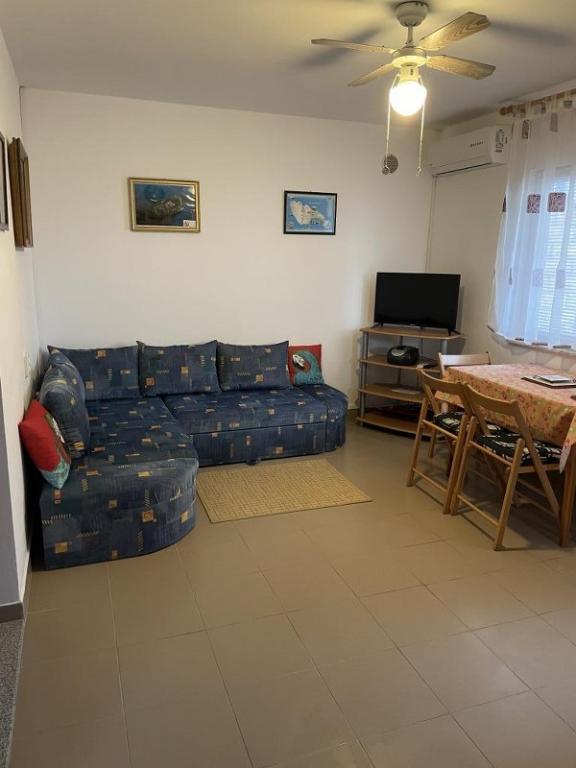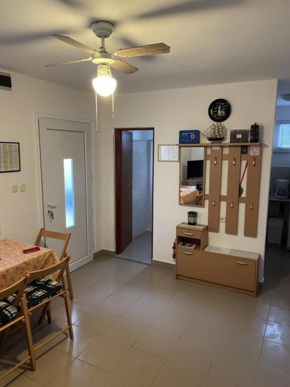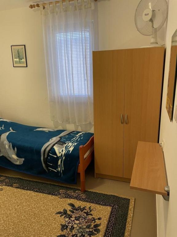 Apartment with 2 stars, air-conditioned, four beds, two rooms. There are additional fans in each room for those who do not mind the air conditioning. Living room, kitchen, terrace with outdoor grill and outdoor shower, bathroom, apartment is fully furnished with the possibility of an extra bed. Possibility of used washing machine Parking with shade for cars. We ask guests to bring their own towels, the rest is ours. The apartment is suitable for a family of up to 4 people, including children. The apartment is located in a family settlement. Only guests for whom the apartment is rented can stay in the apartment. We rent only one apartment, we guarantee peace and privacy!