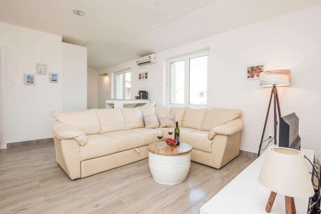 Modernly equipped apartment, with two bedrooms, living room, equipped kitchen (coffee maker, kettle, dishwasher), air conditioning, WiFi and a large and spacious terrace, parking space is located within the building, as well as a barbecue. The apartment is located in the immediate vicinity of the beach (200 m), shops (200 m) and restaurants (100 m). Distance to the center of Vir is 2.4 km.