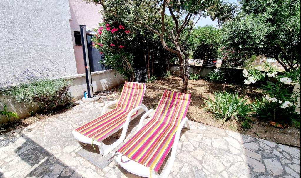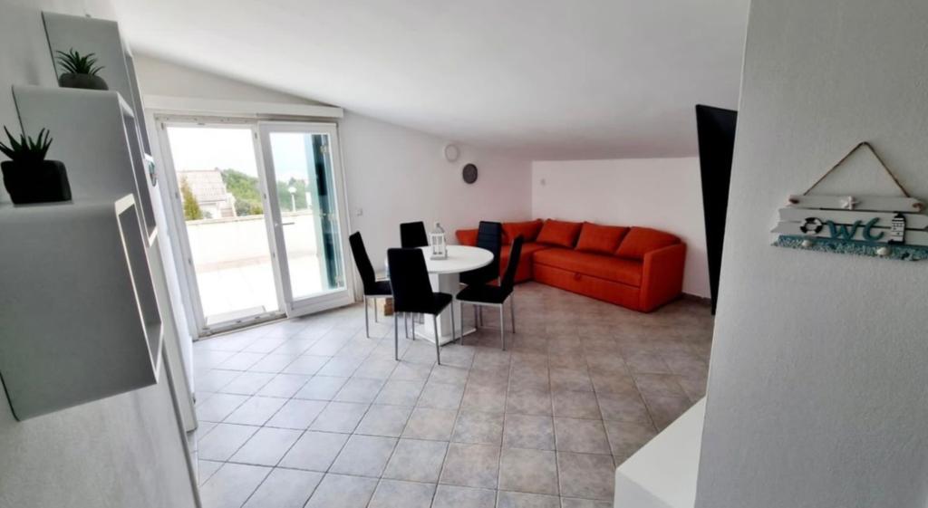 Dear guests, We are renting a newly renovated apartment on the island of Vir, Mala Slatina area, ideal for a family of four. The apartment is located at the end of a cul-de-sac, which provides the opportunity to enjoy peace and security for children to play. The apartment has 2 bedrooms, a living room, a dining room, a kitchen and a bathroom, a terrace of 24 m2 with a *beautiful view of the sea* 🌊🌊 and a parking space and a safe. A barbecue and an outdoor shower are also available. Distance from the beach approx. 200m. All facilities such as shops, cafes, restaurants are in the immediate vicinity.