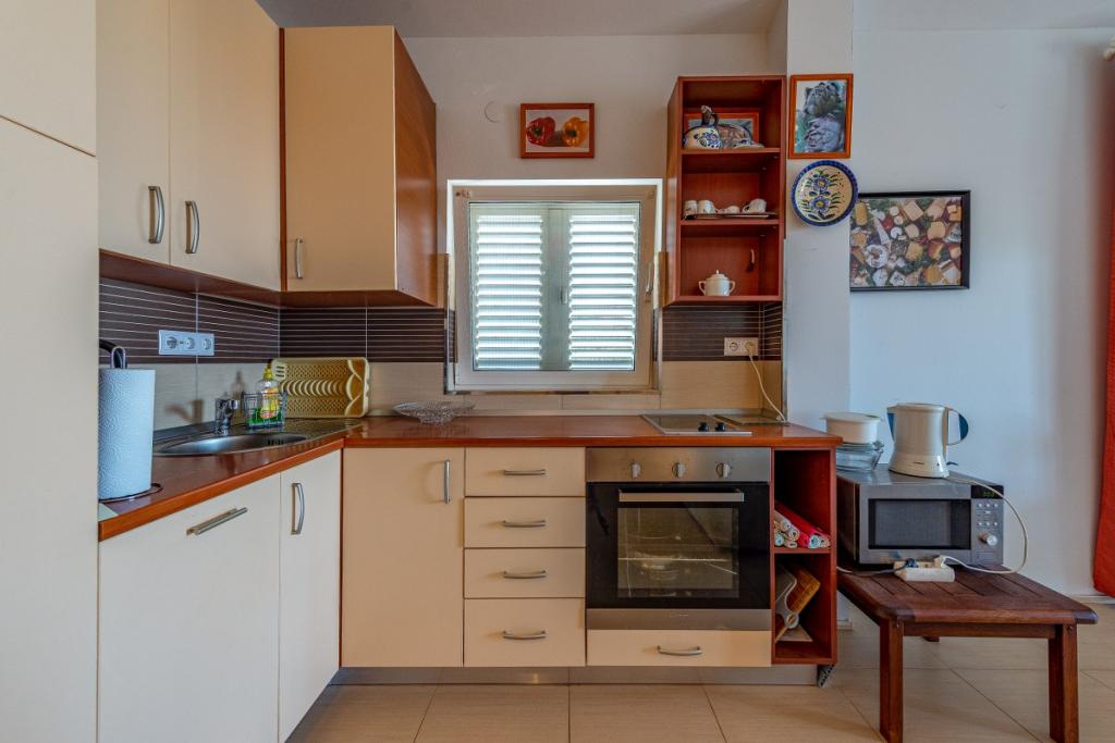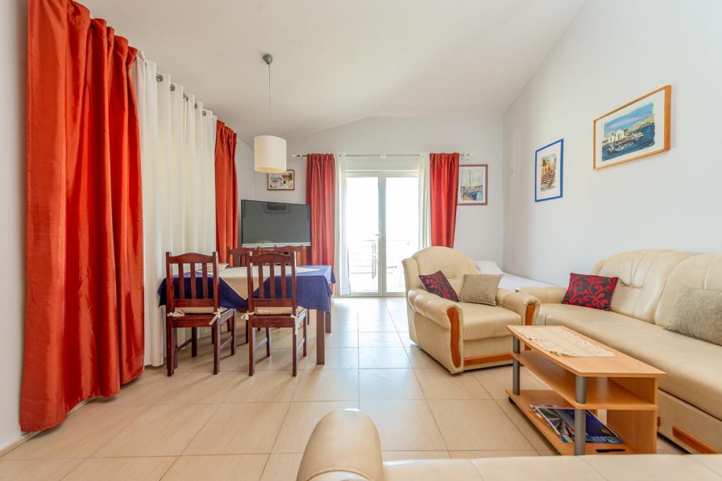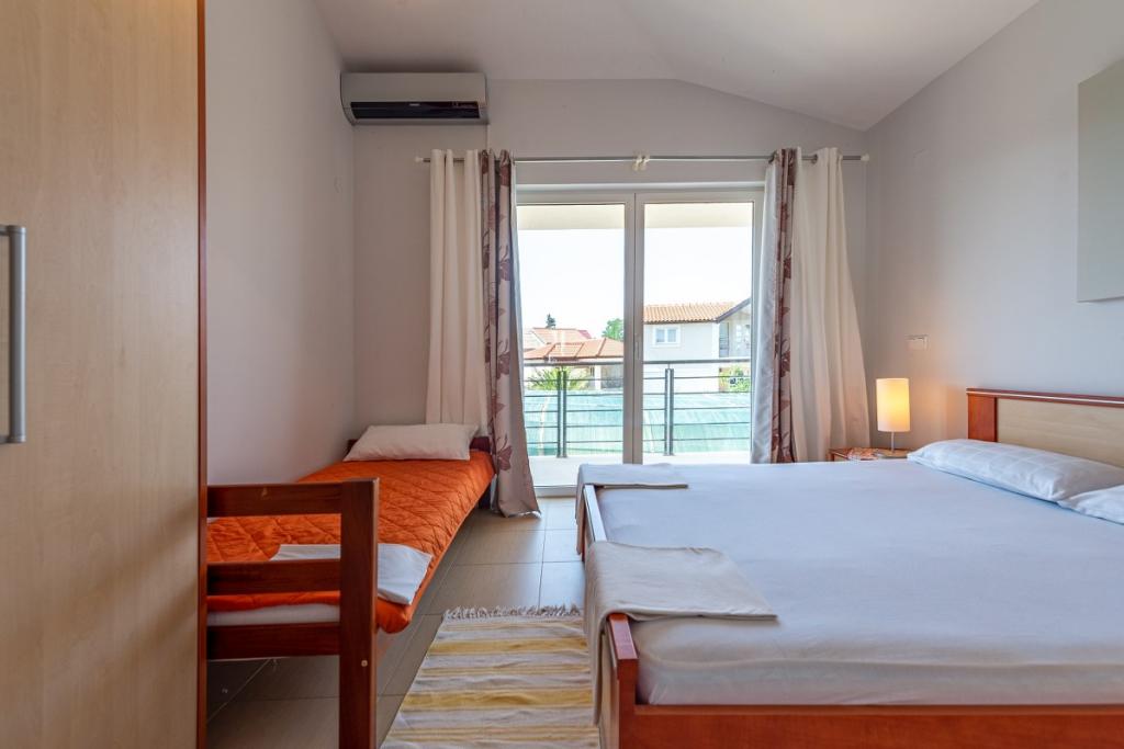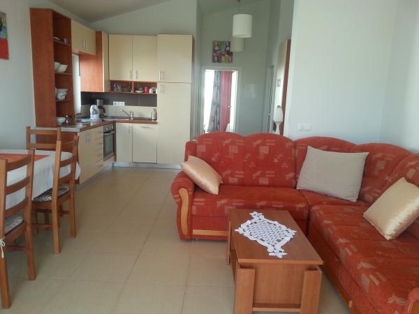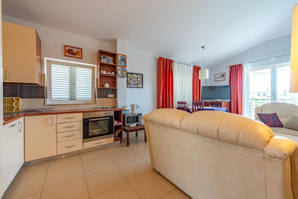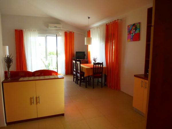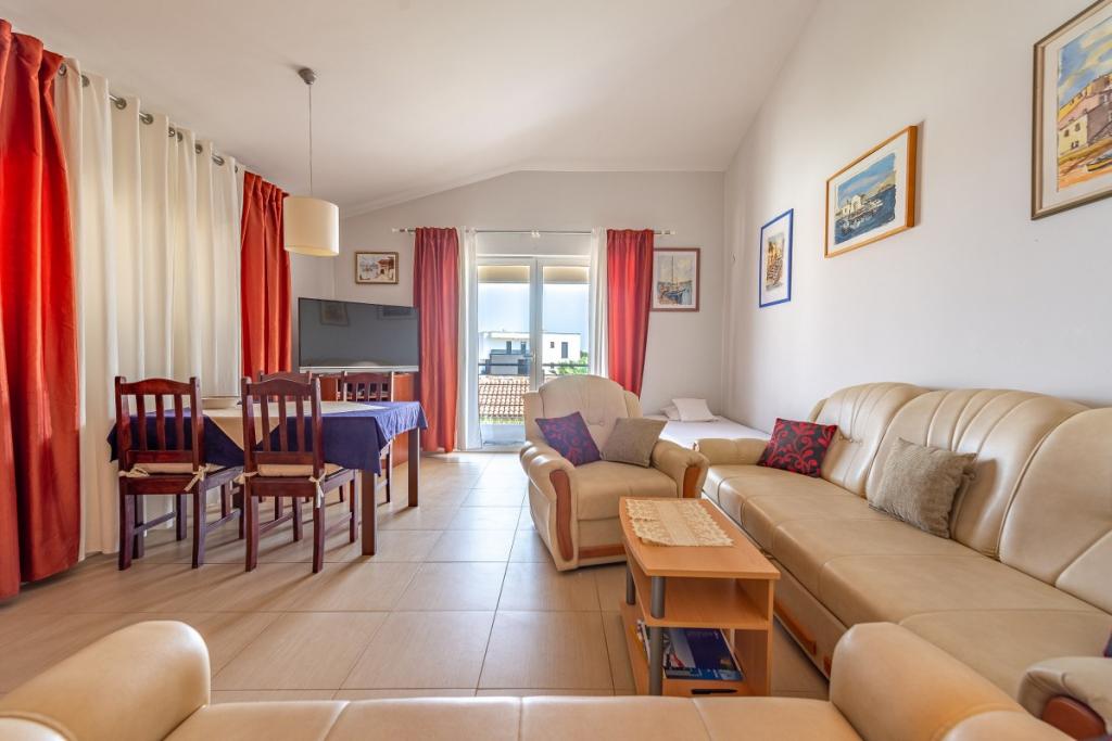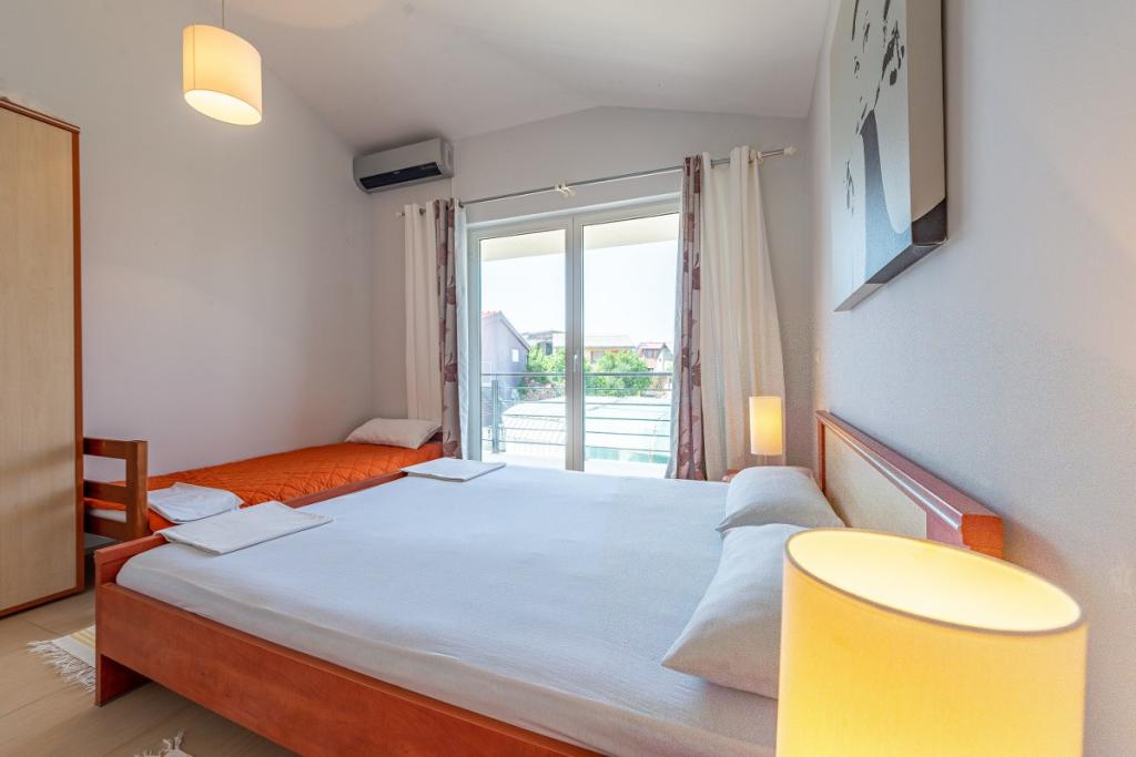 The apartments are located on the 1st floor of the holiday house, approx. 180 m from Jadro beach and the center of Vir. Jadro beach, the most famous beach on Vir. The apartments are spacious with one bedroom that has a French bed and another extra bed. and a living room with a pull-out bed. The owner accepts 2 adults with two children, or 3 adults and 1 child. There are 2 terraces. The terraces are facing the sea, the second terrace is on the north side. The apartments have air conditioning, TV, satellite, wifi. Parking is in front of the apartment. Excursions to Kornati, National Parks Krka, Paklenica, Plitvice are organized through the agency Vir turizam. Rental of bicycles, speedboats and boats. Diving school. The pool can be used only from 01.06. - 30.06.