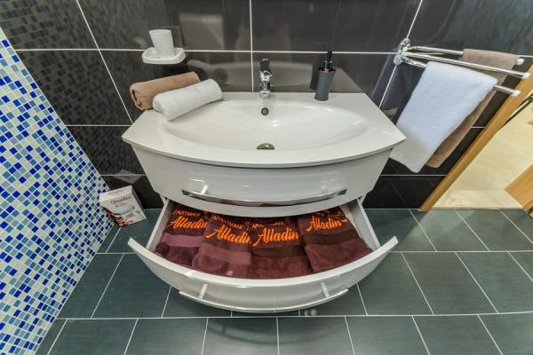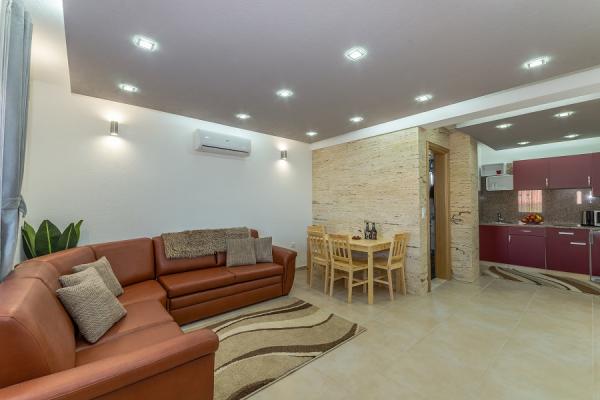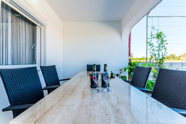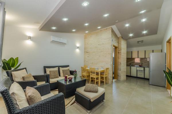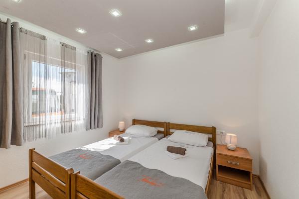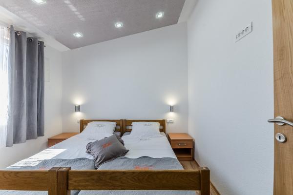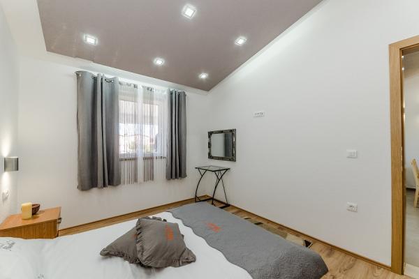 Apartments ALLADIN, are spacious and modern facilities in a quiet djijelu island of Vir. They consist of two bedrooms, kitchen, living room, bathroom and terrace. Distance from the sea 150m, in the courtyard of the parking places, grill and trampoline for our youngest guests. ALLADIN Apartment A1 is located on the ground floor and apartment Aladin A2 is on the floor.
