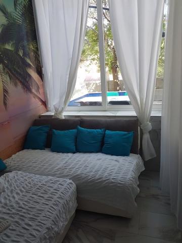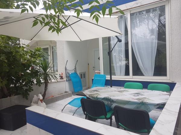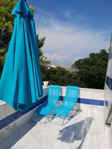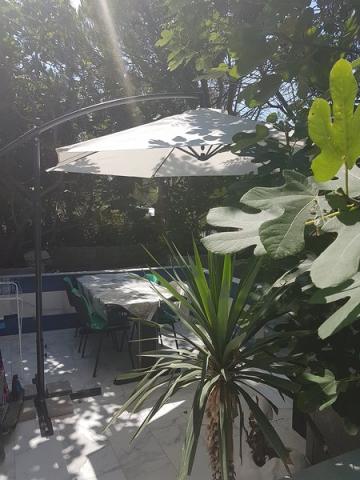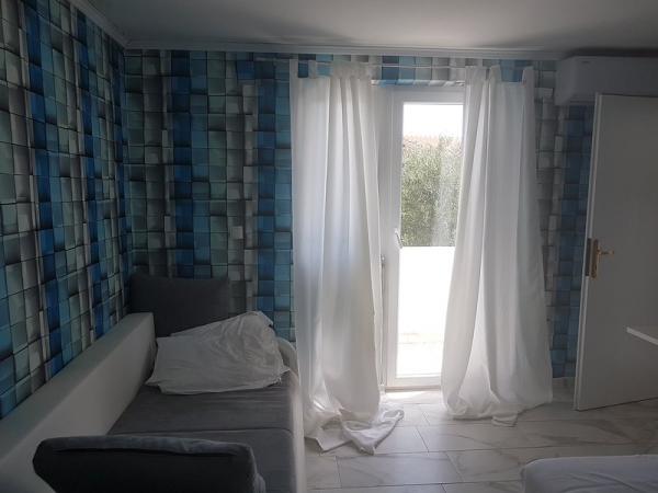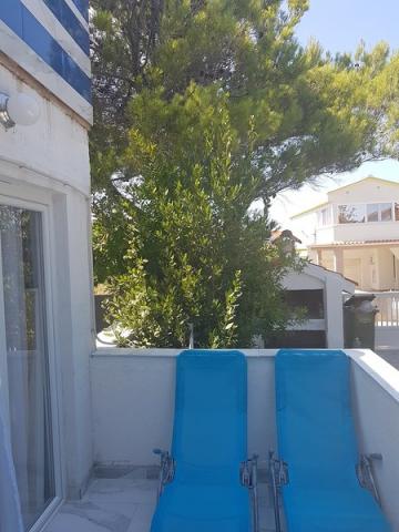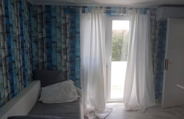 Residential tax is included in price.The apartment is available and it would be suitable for up to 5 people - it is important to pick the exact number of guests. There are 2 bedrooms with boxspring beds and the terrace has sea view. There is also open lounge set, which is good for some drink al fresco under the starry sky. The nearest beach is a minute walking from the building. Around the house is a horticulturally maintained greenery and Mediterranean culture (olives and figs). The terrace has sea view and the nearest beach is one minute walking from the house. This house offers complete peace and relaxation, but if you want to have fun or going clubbing - there are many places for young people and for family people to go out. Center of the island has got reach club life