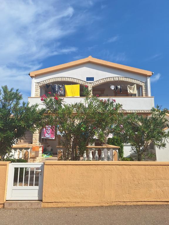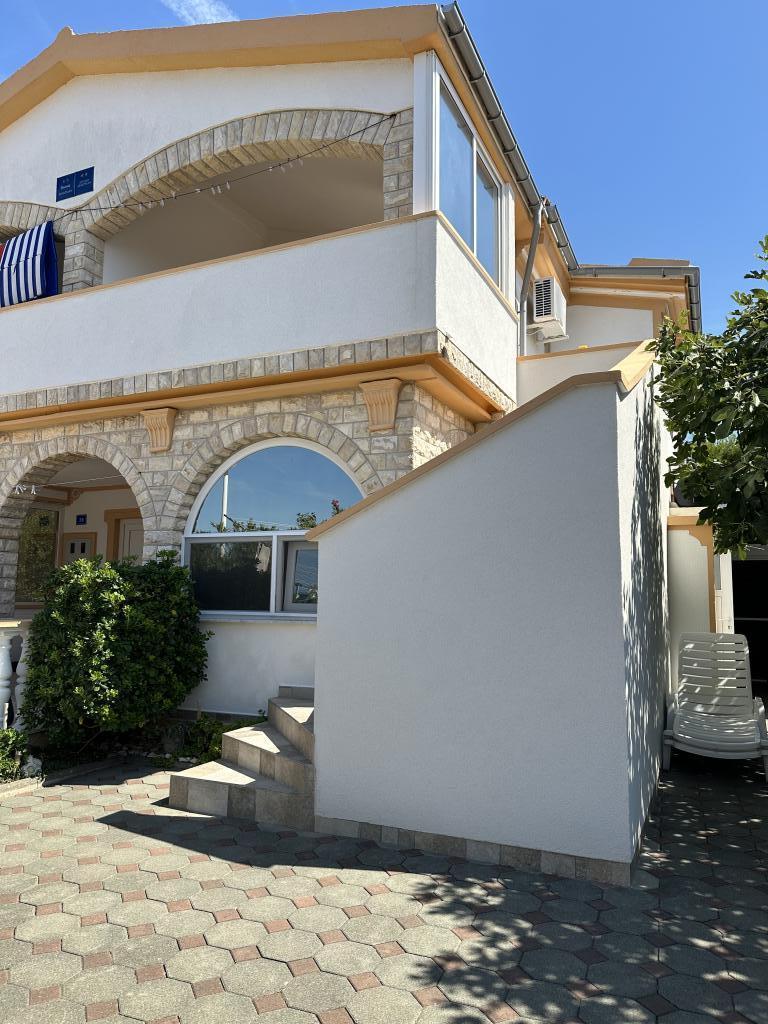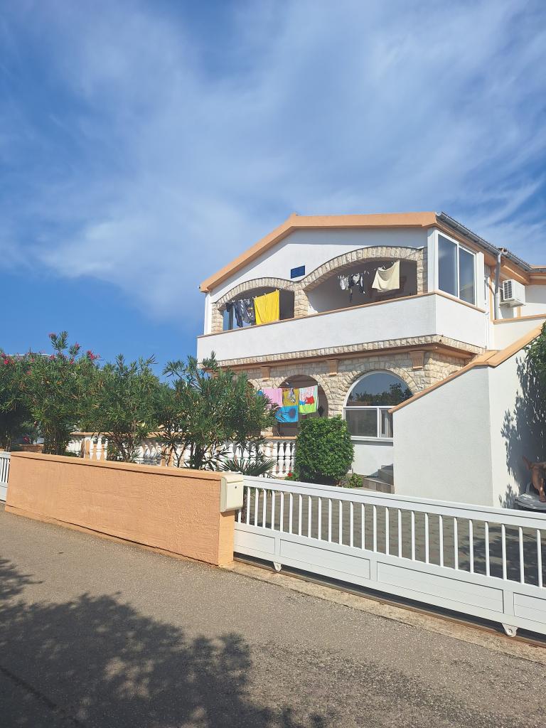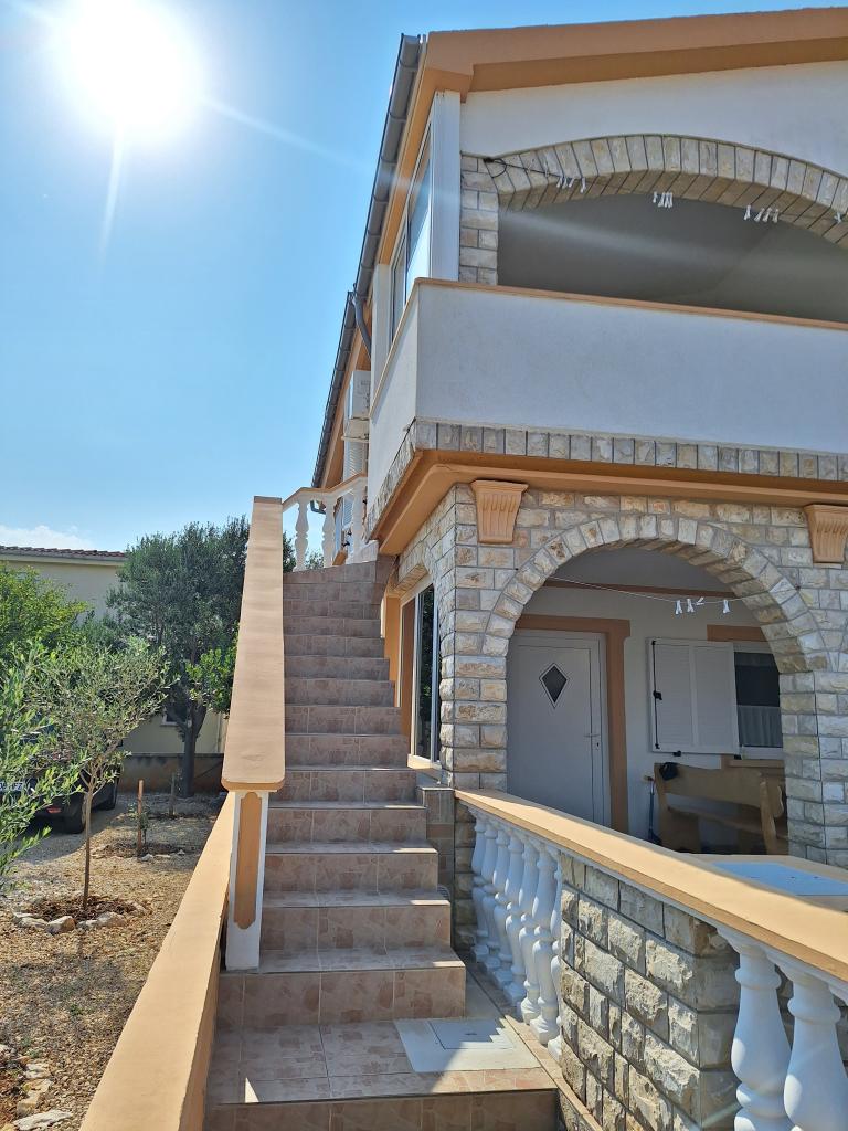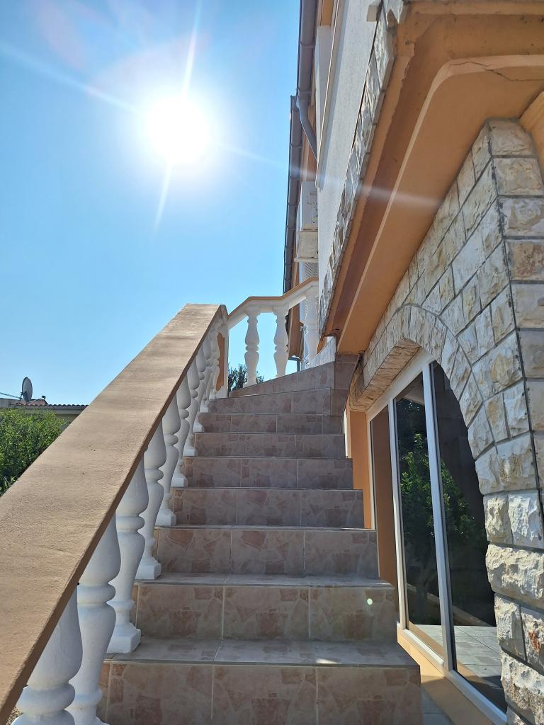 There are three apartments in the house. Two of them have two bedrooms, a living room, a kitchen, a bathroom and a large covered terrace. Each has one room with a double bed, and the second room has two single beds. The third apartment has one bedroom with a double bed, a kitchen, a bathroom and also a large covered terrace. All rooms have bedding. The kitchens have dishes for cooking and serving food, as well as a microwave and a kettle. Each apartment also has air conditioning, which is included in the price. All apartments have a separate entrance. There is a parking lot within the house that is available for all guests. A barbecue can also be used. Žitna uvala beach is 80m away. The beach is pebbly, and the sea is sandy. There is a promenade and a bicycle path along the beach, as well as several cafes, restaurants, pastry shops and bakeries. There are several shops within 100m. The center of Vir is 1800m away.