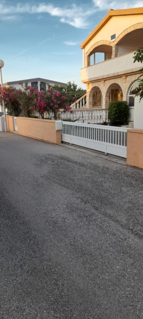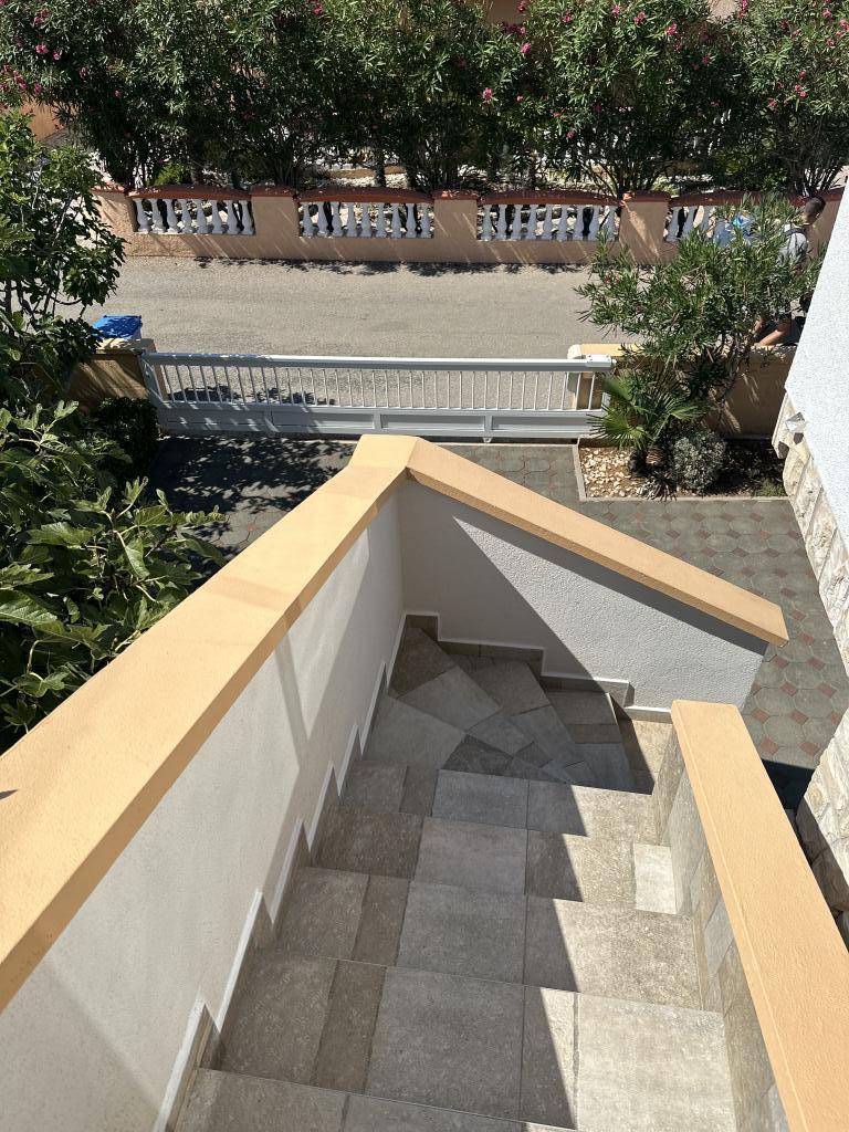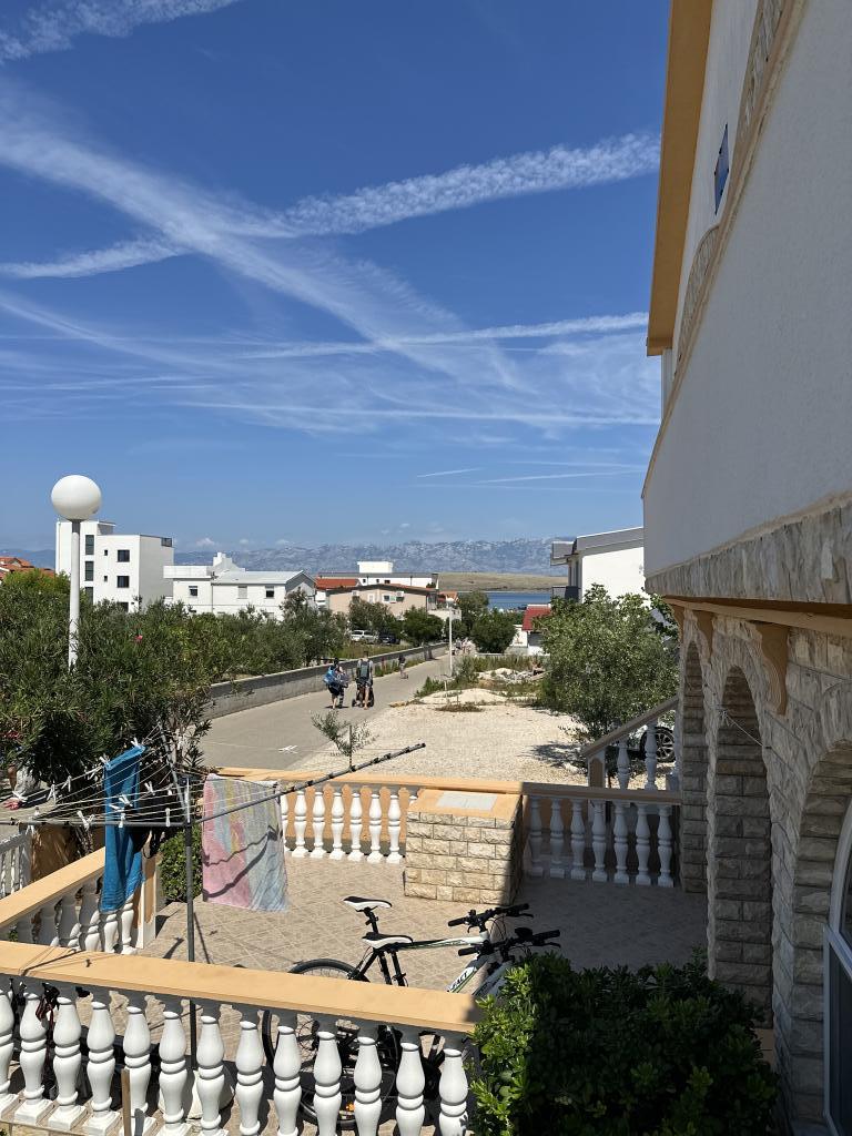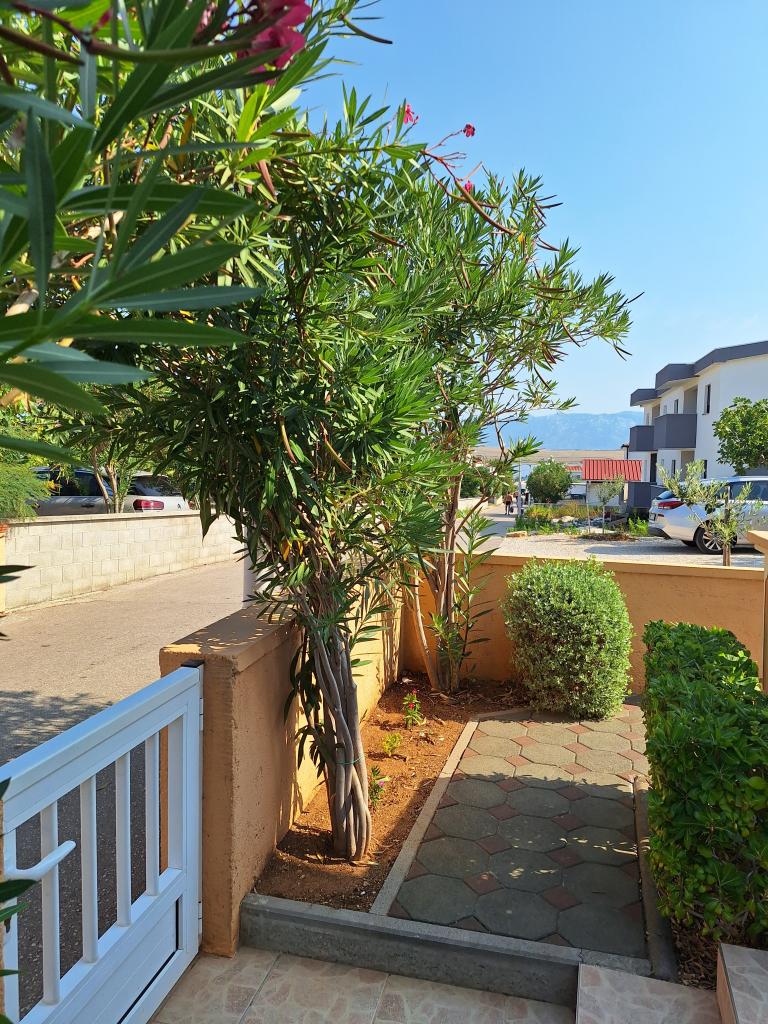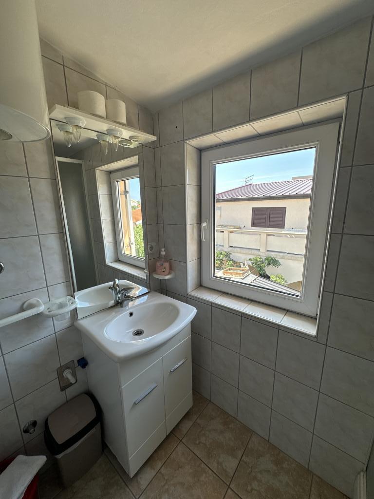 There are three apartments in the house. Two of them have two bedrooms, a living room, a kitchen, a bathroom and a large covered terrace. Each has one room with a double bed, and the second room has two single beds. The third apartment has one bedroom with a double bed, a kitchen, a bathroom and also a large covered terrace. All rooms have bedding. The kitchens have dishes for cooking and serving food, as well as a microwave and a kettle. Each apartment also has air conditioning, which is included in the price. All apartments have a separate entrance. There is a parking lot within the house that is available for all guests. A barbecue can also be used. Žitna uvala beach is 80m away. The beach is pebbly, and the sea is sandy. There is a promenade and a bicycle path along the beach, as well as several cafes, restaurants, pastry shops and bakeries. There are several shops within 100m. The center of Vir is 1800m away.