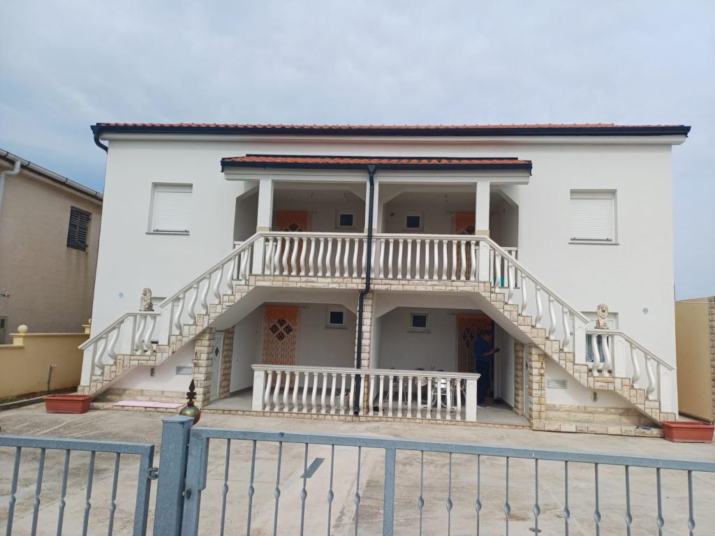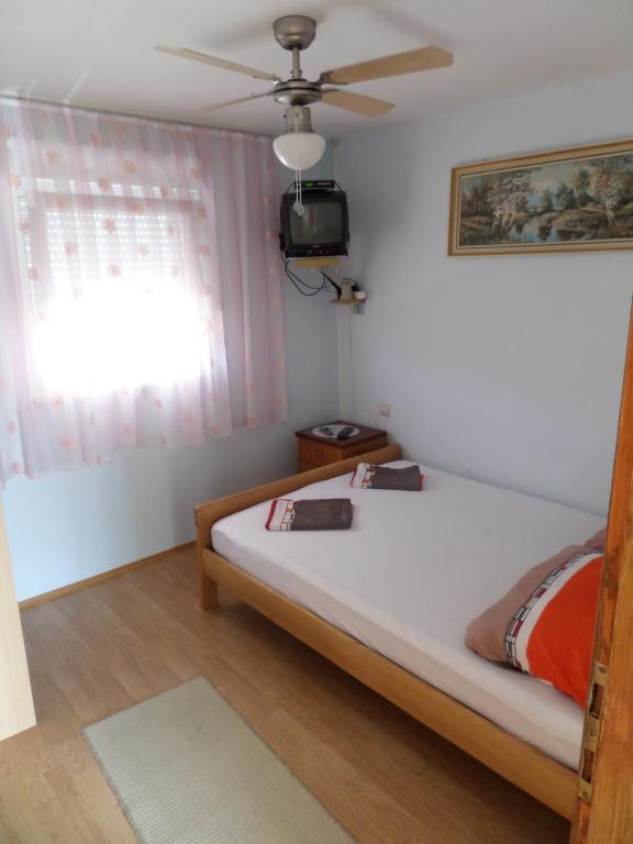 The house consists of 4 residential units, 2 per floor. There are a total of 3 apartments for rent, 2 on the upper floor and 1 apartment in the basement. All units are identical with 2 bedrooms, a terrace, a hall, a fully equipped kitchen and a bathroom. Each unit has an LCD TV with satellite channels and air conditioning. A barbecue as well as a seating area in the yard are available for general use. However, each unit also has its own private terrace/balcony. The nearby beaches are mostly pebble, but the water has the finest sand. Especially for families with children. Air conditioning extra €1/hour