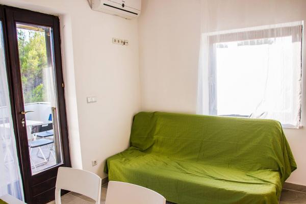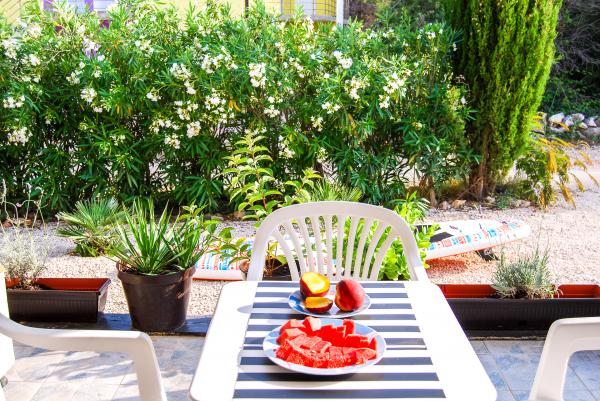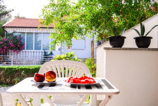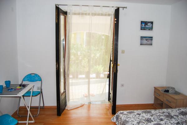 Apartment with kitchen, bedroom and large terrace, parking, air conditioning, in a quiet area surrounded by pine forest, 150 m from the pebble beach with pine forest. Ideal if you want to get away from the crowds and noise. The apartment is on the first floor of the house with a separate staircase and no other guests upstairs.
