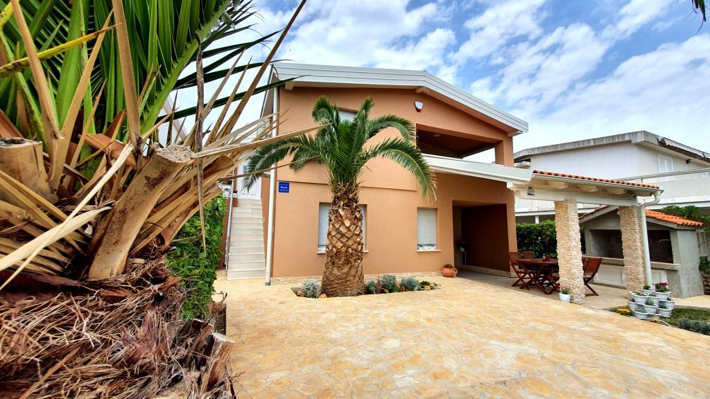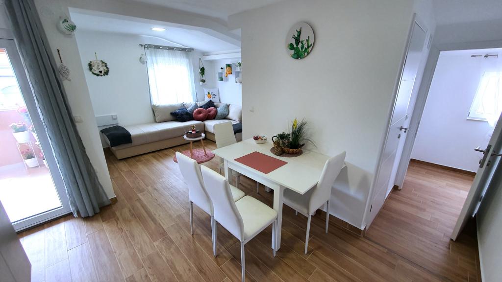 Newly decorated, modern apartments on the island of Vir are equipped with everything you need for a pleasant and relaxing vacation. The apartments are located on the first floor of the family house and each has its own large terrace as well as a fully equipped kitchen, bathroom and bedroom and an associated parking space that is under 24-hour video surveillance for the safety of your car. The apartments are located in a quiet part of the island without any night noise and suitable for children to play because many beaches have a sandy bottom and are very shallow in most parts, making them an ideal choice for parents with children. Nearby there are various beaches, promenades as well as all other facilities such as shops, bakeries, cafes, restaurants, pharmacies, clinics, churches, post offices and bus stations. All facilities are within walking distance and it is not necessary to use a car during your stay. All apartments have wi-fi, air conditioning and a washing machine, which are included in the price. For all other information and questions, please feel free to contact us.