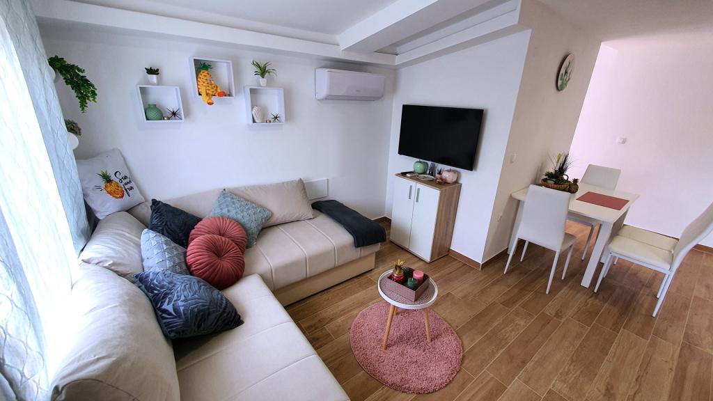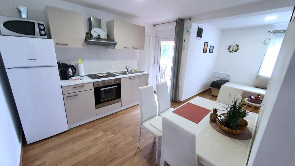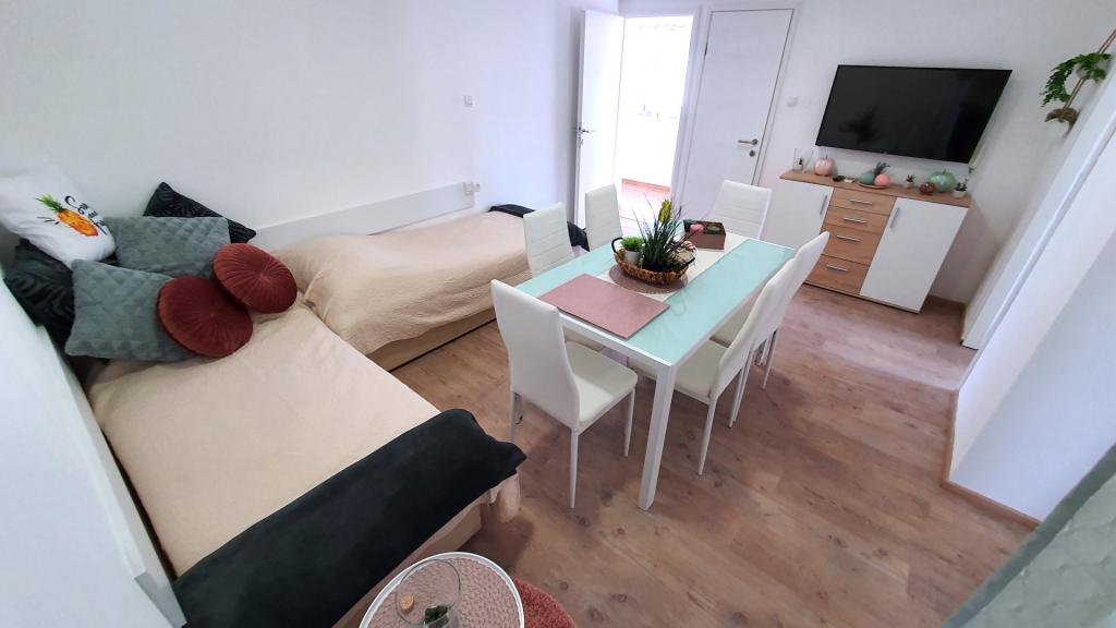 All recommendations for this beautiful apartment, it has everything I mean everything you need, modern, neat and clean both inside the apartment and in the yard. Terrace in the morning a little sun in the afternoon shade for enjoyment. The owners are pleasant to work with, unobtrusive. Nicely welcomed and seen off. Quiet location, easy walk to the beach, center. PS sour cherry extra