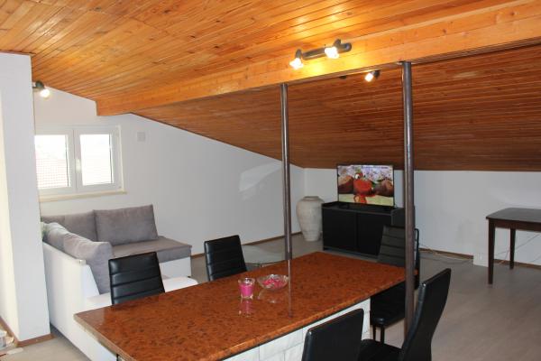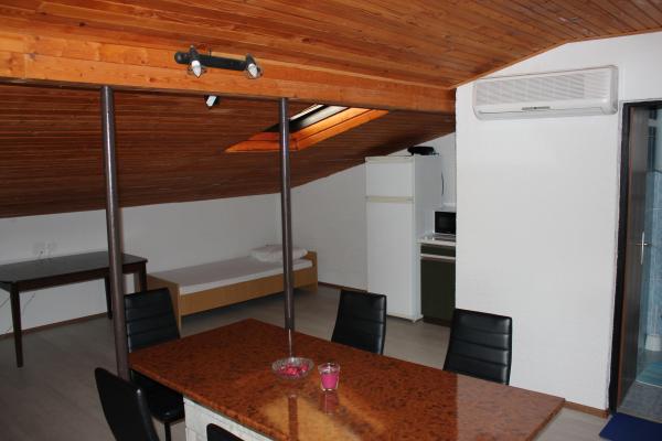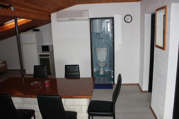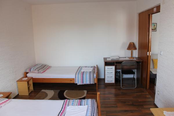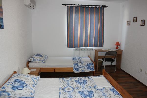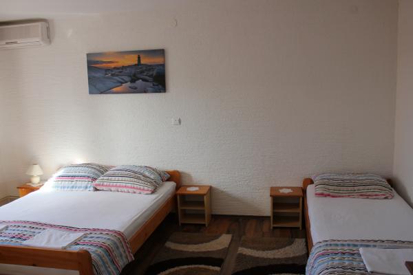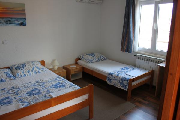- house with 3 apartments. Two apartments (A1, A2) are located on the first floor, while the third (A3) is on the second floor. A1 and A2 have three beds in one bedroom with one double and one single bed. Both have a kitchen with a balcony and a small bathroom. A3 has two bedrooms with 4 beds, small kitchen and bathroom. All apartments have WI-Fi, TV, air conditioning, refrigerator, microwave, water kettle and parking. The house is located 300m from the sea / beach Lučica and 250m from the supermarket. Water from the pipe is not for drinking.