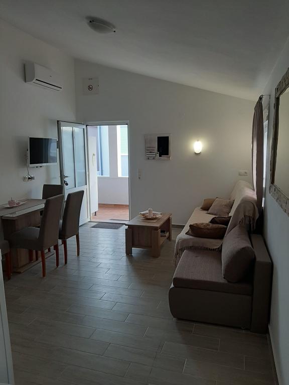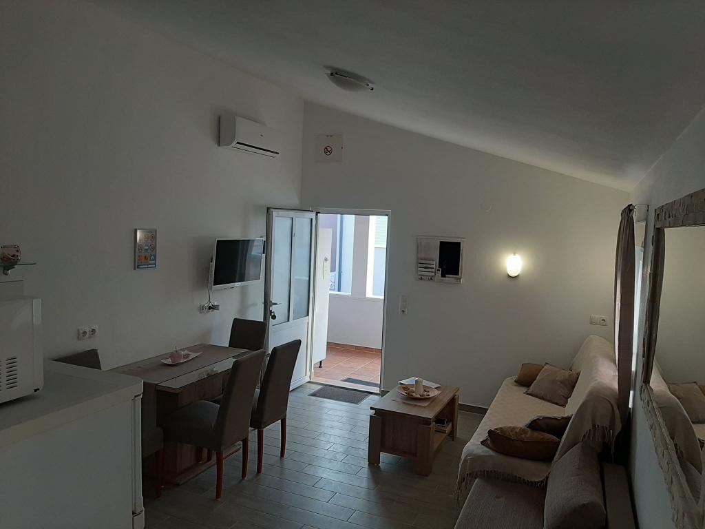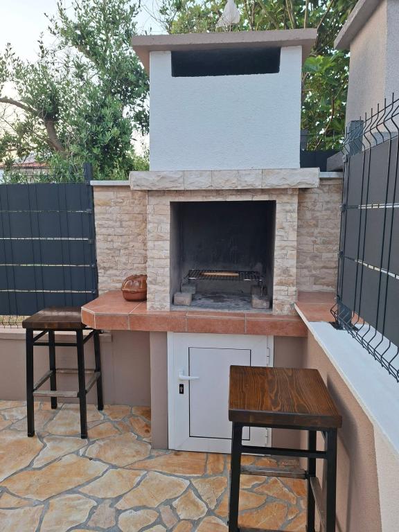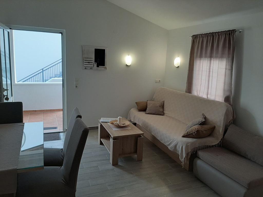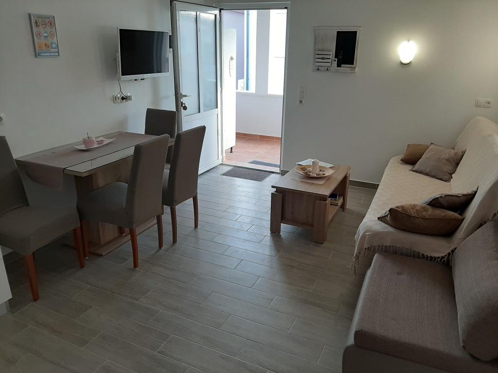 On the island of Vir, just 150 meters from the sea, there are two apartments with a capacity of up to 5 people. The apartments are modernly equipped, air-conditioned and adapted for a comfortable stay. Each apartment has its own terrace with a seating area, and in the fenced yard guests have access to private parking and a grill. The proximity of the sea and the beach, together with practical amenities, make these apartments a suitable choice for families and small groups of friends looking for accommodation in the immediate vicinity of all the main facilities. The apartments are suitable for accommodation of up to 5 people. They consist of two bedrooms, the apartments have a bathroom with a shower and a washing machine, and a fully equipped kitchen connected to the living room. For relaxation and outdoor living, there is also a terrace with a seating area. The apartments are air-conditioned and modernly decorated, ideal for a family vacation or a stay in a smaller group of friends.