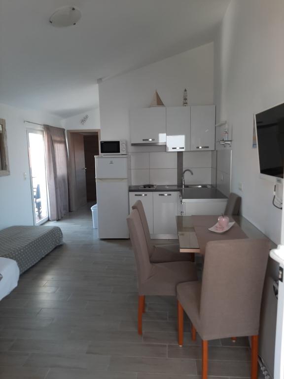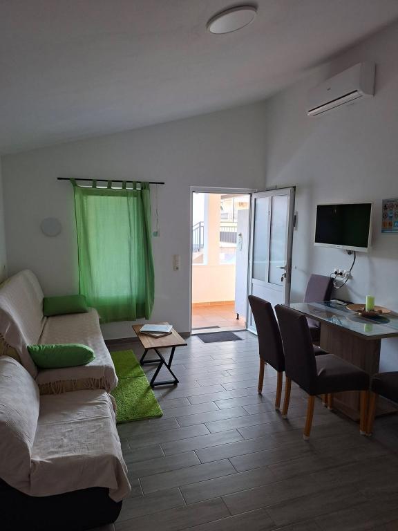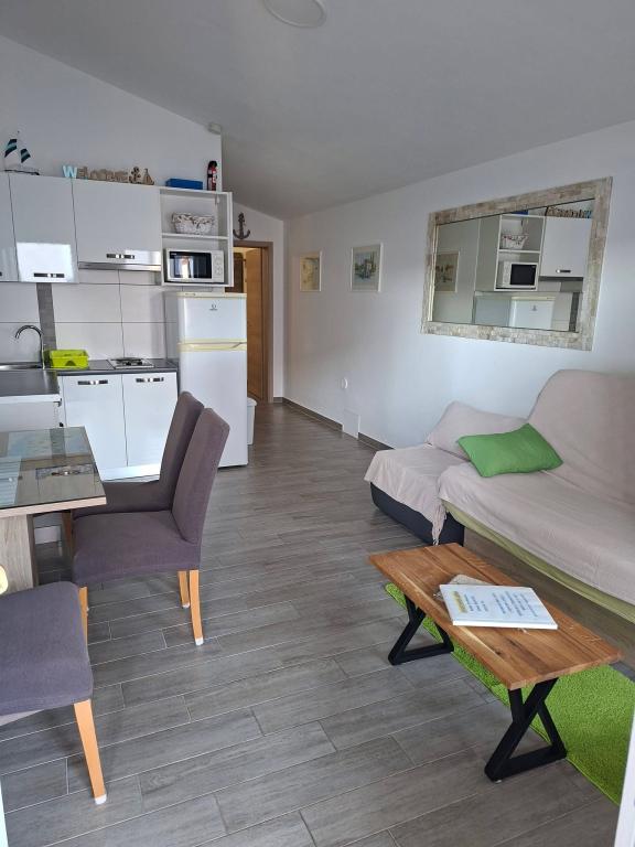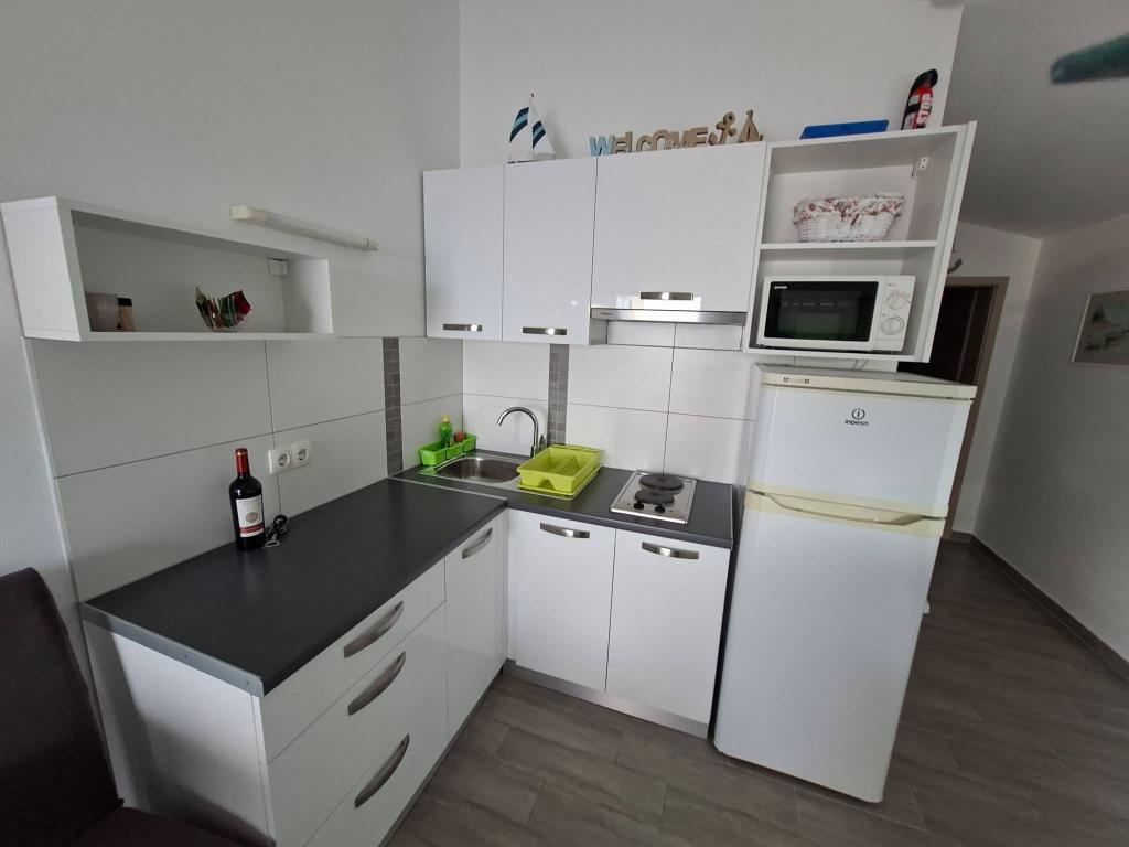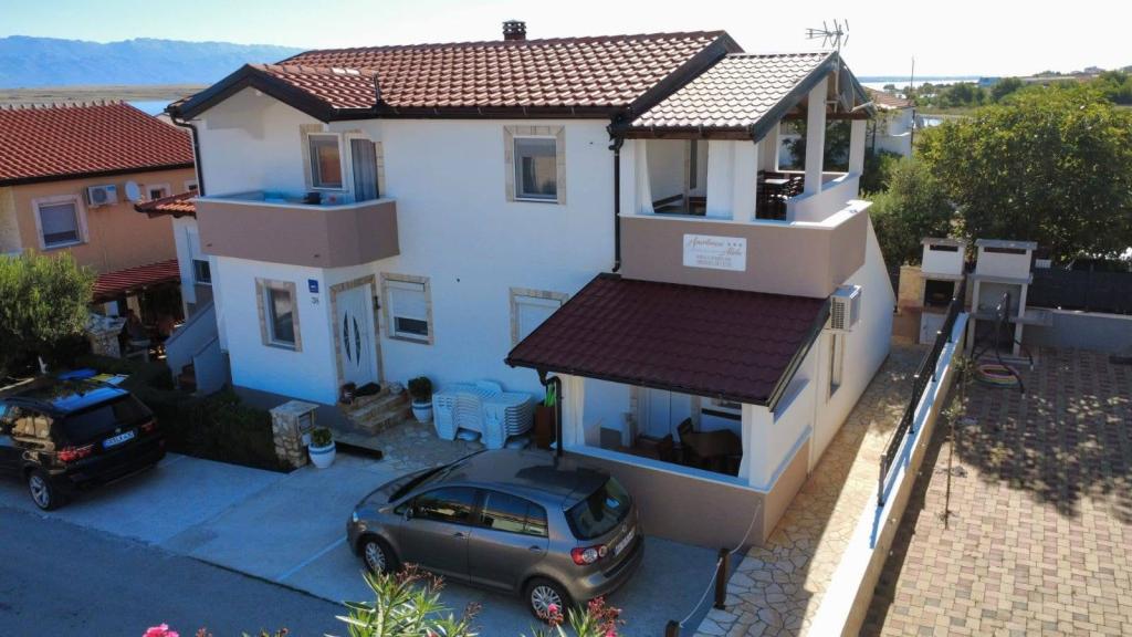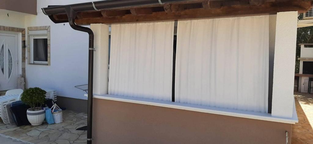 On the island of Vir, just 150 meters from the sea, there are two apartments with a capacity of up to 5 people. The apartments are modernly equipped, air-conditioned and adapted for a comfortable stay. Each apartment has its own terrace with a seating area, and in the fenced yard guests have access to private parking and a grill. The proximity of the sea and the beach, together with practical amenities, make these apartments a suitable choice for families and small groups of friends looking for accommodation in the immediate vicinity of all the main facilities. The apartments are suitable for accommodation of up to 5 people. They consist of two bedrooms, the apartments have a bathroom with a shower and a washing machine, and a fully equipped kitchen connected to the living room. For relaxation and outdoor living, there is also a terrace with a seating area. The apartments are air-conditioned and modernly decorated, ideal for a family vacation or a stay in a smaller group of friends.