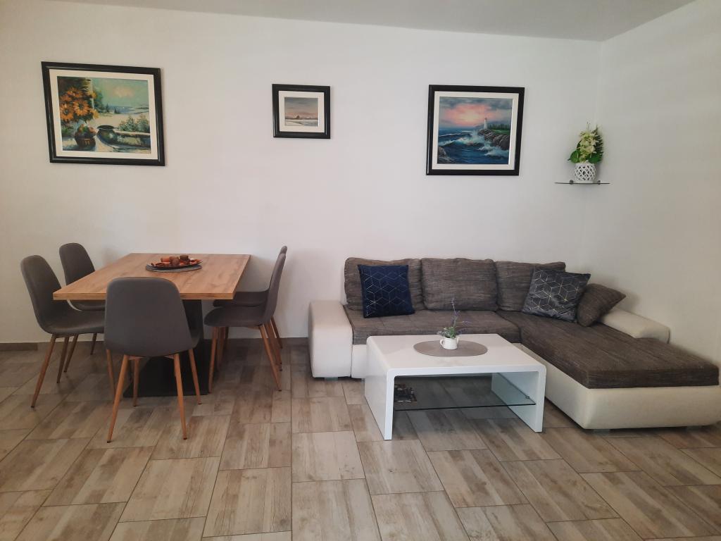 The apartments are located in a quiet part of the island of Vir, newly built, completely and modernly decorated. They are located 100 M from the beach. The facility is located 200m from shops, restaurants, casinos, bakeries, exchange offices, ATMs and cafes. The apartments consist of two bedrooms, living room, dining room, kitchen, bathroom, hallway and covered terraces. Each apartment has a grill on the terrace. The apartments are equipped with air conditioning, WIFI, satellite dish. Each apartment has its own parking space.