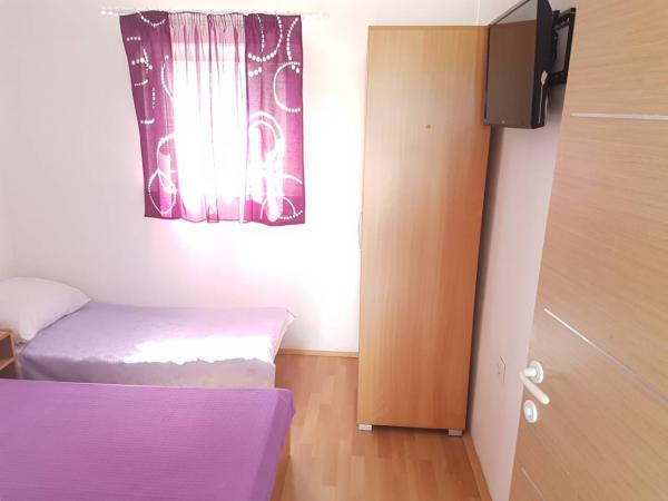 The apartment is located in Vir on a quiet part of the island surrounded by pine trees away from Zadar 26km and 33km from Zadar airport. Parking provided in the yard, use of grill and bake. The apartment includes: room, kitchen, bathroom, sea view terrace, tv, radio, wi-fi and air conditioning. The apartment is away from the beautiful natural beach with a 5 minute easy walk. The Plaza is suitable for swimming and non-swimmers. It is surrounded by a pineapple sum.