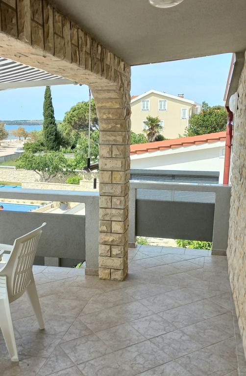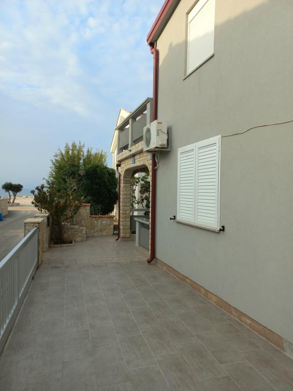 The apartments are located on the first floor of the house. With a large terrace and a view of the sea. They are located in a quiet area. Second row to the sea, distance from the beach and the sea 20m. The parking lot is located in the yard of the house and is intended only for smaller vehicles. Larger vehicles are parked on the shore. Guests have at their disposal a barbecue, air conditioning, TV, satellite TV, wi-fi.