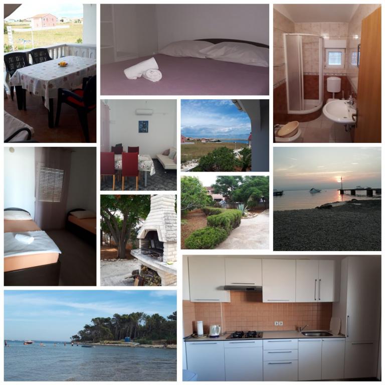 Newly equipped apartments with a large fenced yard, on the island of Vir, which is connected to the mainland by a bridge. We offer three apartments. Each of the apartments has its own terrace. Barbecue to use. They are equipped with quality kitchens, LCD TV with satellite, air conditioning, wi-fi, refrigerator with freezer. Sun loungers and parasols are provided for use in the apartment. The beach is pebble (crystal clear), 80m from the accommodation. Close to shops 150m. The city center is 3-5 minutes away by car. Accommodation and surroundings ideal for a family, large parking provided in the yard. View of the sea, Pag and Velebit. Near Vir adrenaline park, fun for the whole family. 20 km to the city of Zadar, which is rich in diverse content. Tourist tax included in the price.