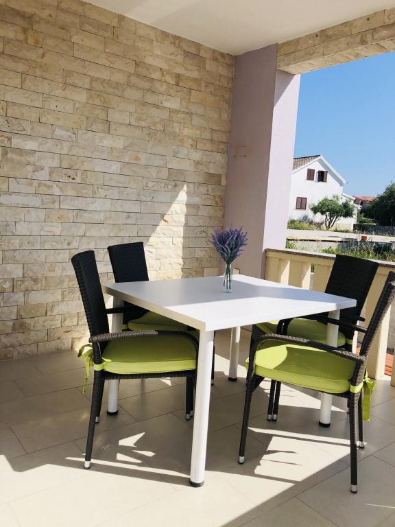 Apartments Lavanda are luxury apartments in the center of the island of Vir on the south side of the island, not even 100m away from the main city beach Jadro. The beach is pebbly with a sandy seabed. It offers the possibility of renting pedal boats, deck chairs, jet ski, entertainment animation program for children and adults, ideal for picigin. Nearby is the main marina (departure of boats for excursions in the Zadar waters), beach bar, pastry shop, pizzerias, restaurant, coffee bar, market and a new entertainment center. Each apartment has two separate bedrooms with double bed, kitchen with dining area, bathroom and spacious terrace. The apartments have clean drinking water from the tap. . The apartments are air conditioned and have free internet access. Parking space is provided in front of the apartment. In the yard there is a barbecue which is available to all guests. We want you to feel comfortable in our apartments as in your own house and that your stay in Vir will remain in your fond memories :) We look forward to your arrival