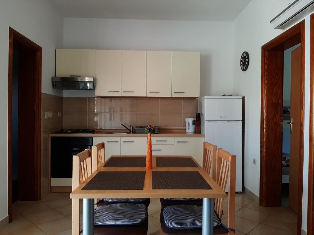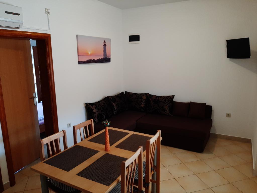 Beautifully decorated and tidy apartments are for rent, consisting of a bedroom with a double bed, a children's room with bunk beds, a living room with a corner sofa with an LCD TV, free WI FI 4G speed. The kitchen is located in the living room and consists of upper and lower elements with built-in hob and oven, hood, sink with hot and cold water. The bathroom consists of a shower cabin, a sink, a cabinet with a mirror and a toilet. Guests bring bathroom towels and all personal hygiene products with them. The apartments have a terrace with a round table and 4 chairs, a parking space for 1 car per app is provided in the yard where there is also a barbecue and an outdoor shower available to guests. The apartments are located in the immediate vicinity of the main beach in Žitna uvala, have an energy certificate and are registered for rent. On the beach there are 3 cafes, fast food, bakery that work all day. There are 3 shops within a radius of 300 m.