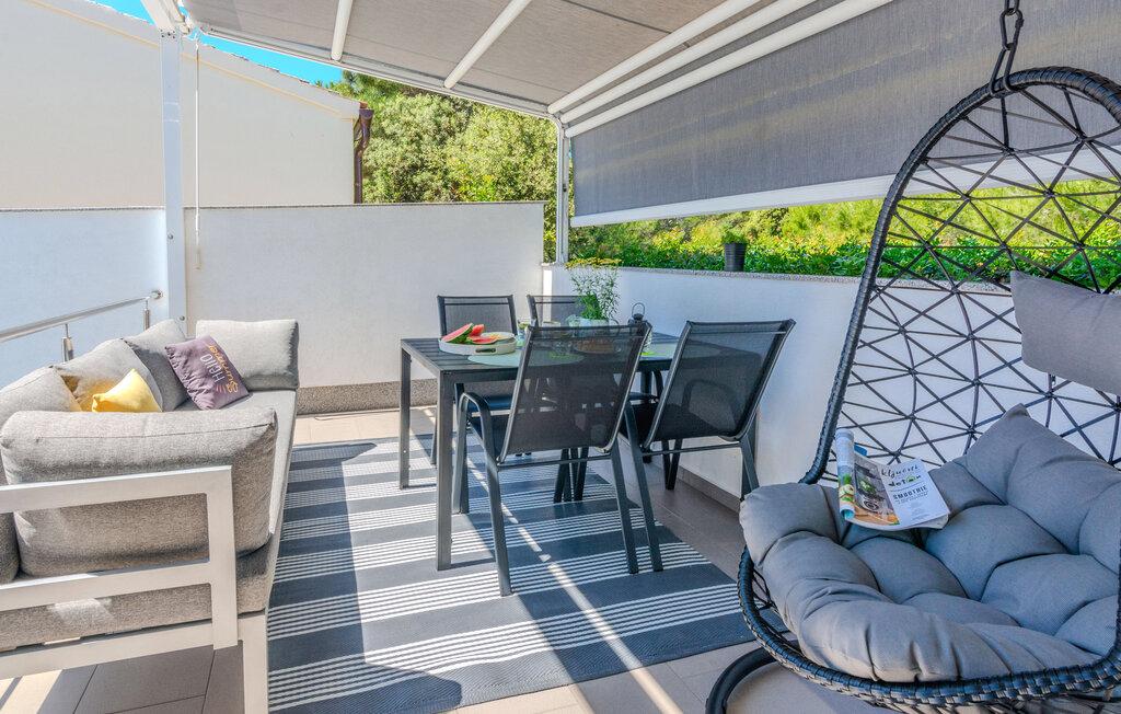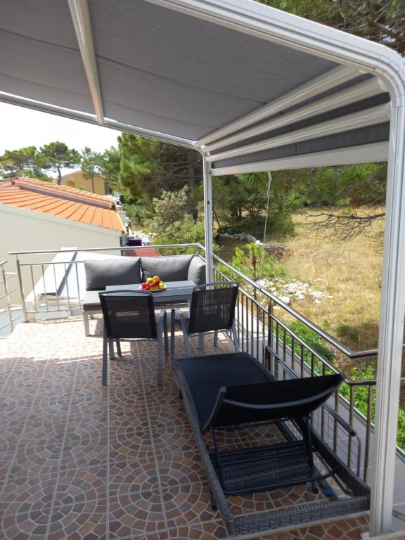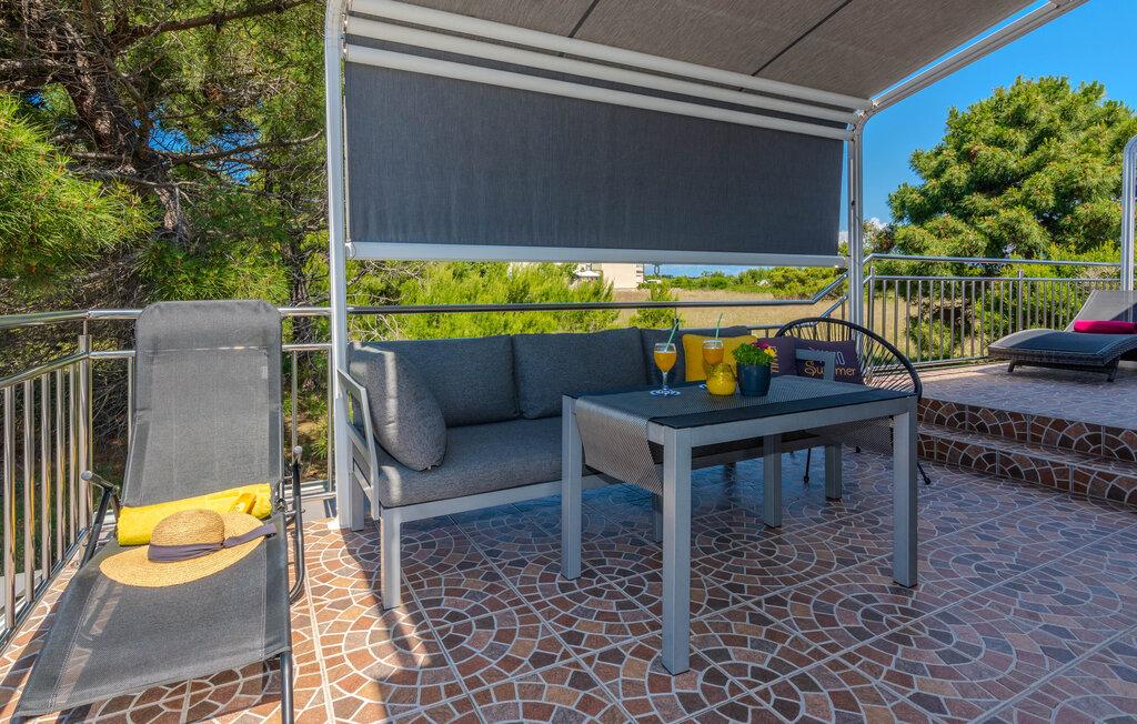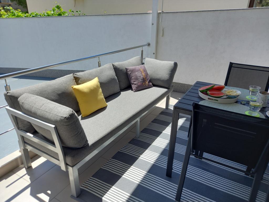 The apartment is very tidy, modern and clean. They even have two terraces, so there is always shade somewhere. The owners are very friendly, always available, upon arrival we were greeted with a delicious welcome, including warm home-made croissants. The sea is a minute's walk away, but there is also a jetty on the beach which is great for youngsters to jump into the water. I recommend! Tjaša