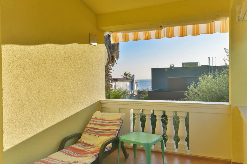 Fully equipped apartments, each room has its own air conditioning and TV, located 40 meters from the sea. Bar, restaurants and supermarket are within walking distance. The beach is pebbly and concrete, a ten-minute walk away is a sandy beach. The house has its own parking, grill and children's swing in the garden. Beach chairs, umbrellas and bicycles are available to guests.