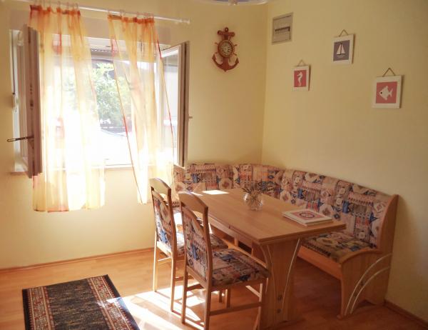 Apartment for 4 persons consists of: two bedrooms, a kitchen and dining room, bathroom and terrace, fully equipped with all appliances (fridge, freezer, oven, air conditioning, TV), parking lots. 10 minutes walk to the beach and 10 minutes walk to the center of the island of Vir (post office, pharmacy, bus station, shops, markets, restaurants, bars).