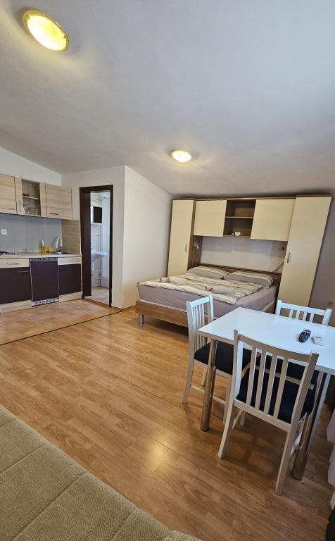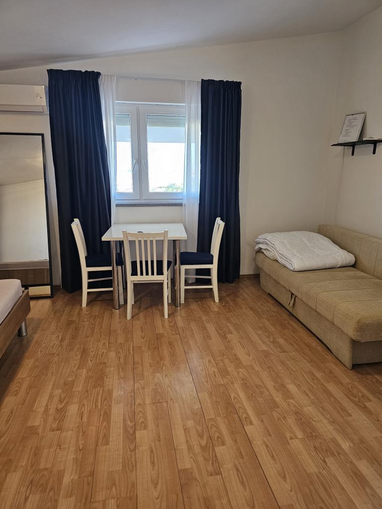 We booked the accommodation at the last minute, but we were not disappointed, we felt at home. Fully equipped rooms, perfect view of the sea, swimming pool, barbecue next to it, cooking room. Accommodation that meets all needs. The host is very friendly, we are glad to have found him.