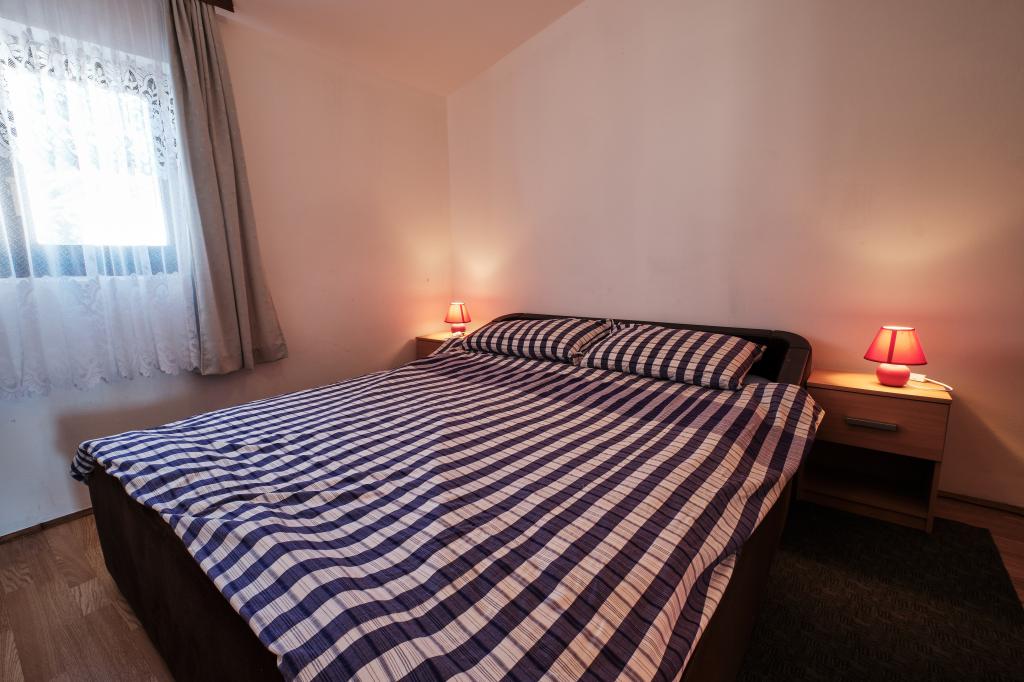 Three apartments in a holiday home on the island of Vir, 200 m from the beach, 50 m from the shop. The apartments have WiFi internet and air conditioning, have separate entrances and are completely separate. Two larger apartments each consist of a bedroom with a double bed, a bathroom, and a living room with a sofa bed (extra bed for two) and a kitchen. The apartment on the first floor has a large balcony, and the apartment on the ground floor has a terrace. There are parking spaces in front of the building. The third smaller apartment is a studio with one large room with a double bed and an extra bed for 1 person (or 2 smaller children) and household appliances, separate bathroom and hallway. The apartment has a small balcony-terrace.