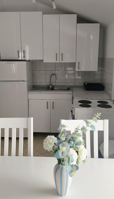 Welcome to our house on the beautiful island of Vir! We offer two comfortable apartments and one studio, perfect for a peaceful and relaxing holiday. We are located just 150 meters from the crystal clear sea, in a quiet family street with very little traffic, ideal for families with children and all those who want to escape the city crowds. The house is surrounded by colorful, well-kept flowers that provide a feeling of warmth and a homely atmosphere. Free private parking is available, so you don't have to worry about your vehicle during your stay. There is a supermarket and a bakery nearby, which allows you to shop easily and quickly during your holiday. The center of Vir is 3 km away, and there is entertainment for children and adults every evening - ideal for those who want to complete their day with a good time. The island of Vir is known for its numerous beautiful beaches, hidden coves and crystal clear sea - perfect for exploring and enjoying sunny days. For day trips, there are numerous attractions nearby: The beautiful historic town of Nin is only 10 kilometers away The Zadar National Museum is 25 km away The famous installation Greeting to the Sun in Zadar is 26 km away Zadar Airport is 34 km away If you are looking for a place for a true vacation, away from the noise, yet close to the sea and interesting attractions - our apartments are the right choice for you!