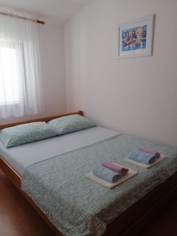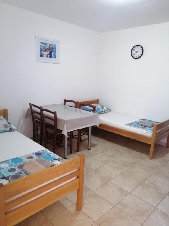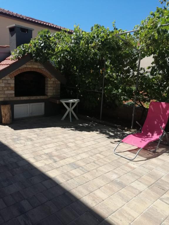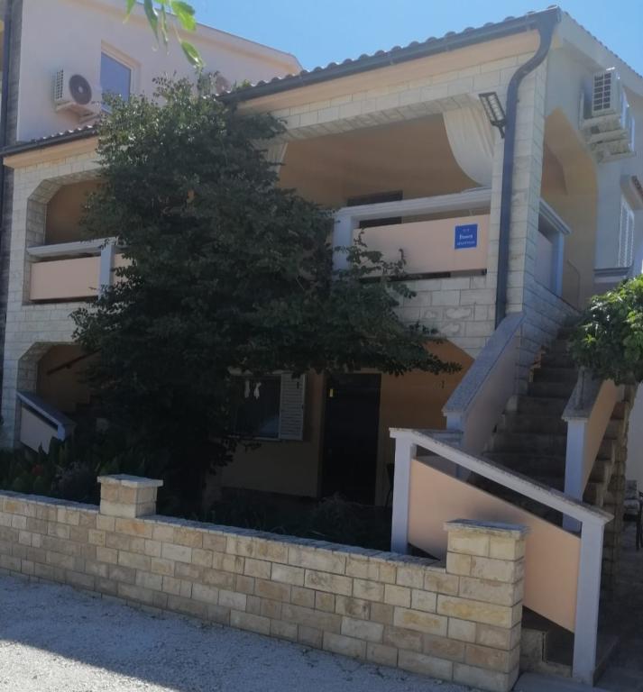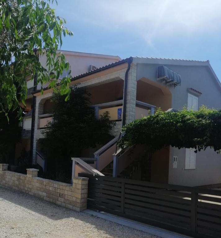 Island of Vir, Velika Slatina settlement, we rent 2 apartments on the first floor of the building with separate entrances, each for 4 people. The apartments are located 350 meters from the sea (arranged pebble beach with a cafe bar), have air conditioning, TV, free unlimited internet, grill in the yard and secured parking, each apartment has its own terrace.