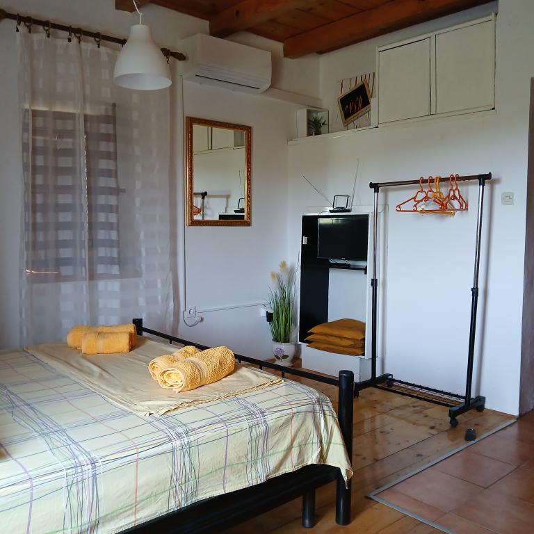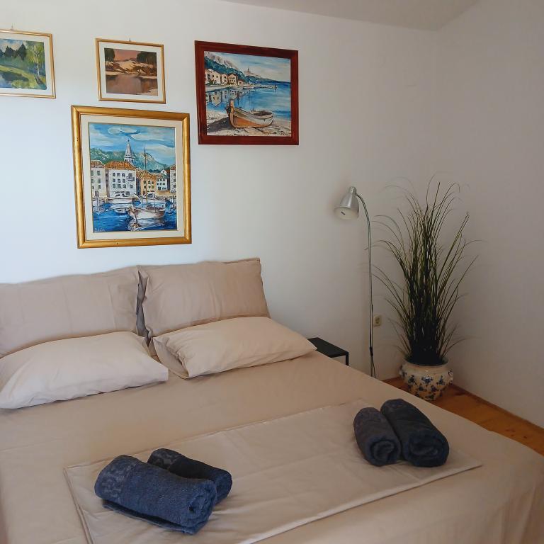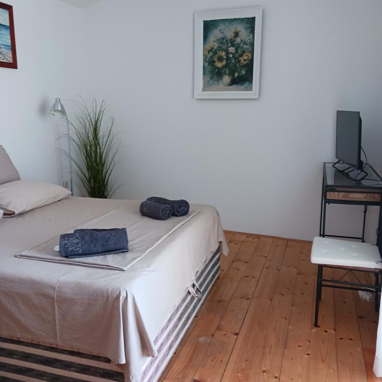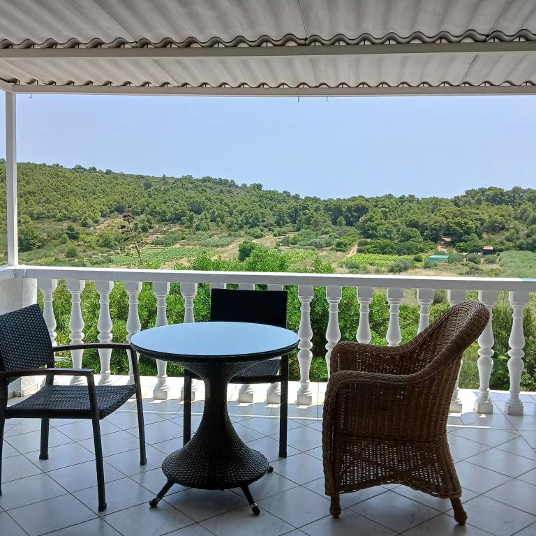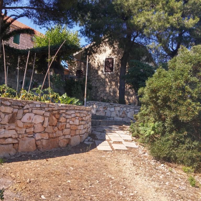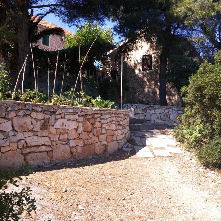 The house in which there are only two apartments in front of the house is parking for 2 cars, while around the house there is a large garden with seating sets, the city center is 8 km away, the house is located on the south side of the island in Podstražje...