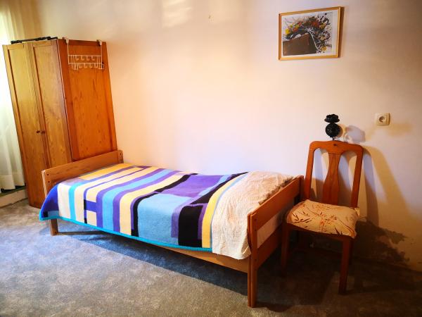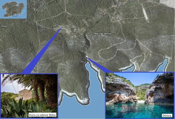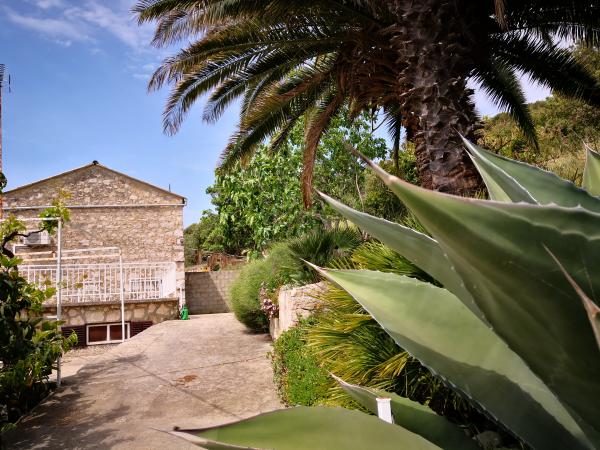Holiday house Beba is a stone house located in Žužeca village, on the south side of the island of Vis, above the most famous beach Stinova and less famous but equally beautiful Smričevica. The beach can be set off by a walk of 20 minutes min. Surrounded by palm trees, olives and spice plants, the Beba House allows you to rest in silence that is interrupted by the sounds of crickets and squirrels. They enjoy a view of the sea and the islands of Lastovo and Palagruza, which comes from a spacious terrace. The house is spread over three floors. On the ground floor there is one bedroom with two beds, a large living room with kitchen and bathroom. On the first floor, which leads down the stairs is another bedroom with double bed and air conditioning, and in the attic there is another bedroom with one bed. Next to the house there is a huge terrace of 30 m2 with a stone barbecue, and one smaller covered with a green shade of leaf leaves. The house has covered parking, satellite TV, air conditioning (in the upstairs room), washing machine and everything else needed.