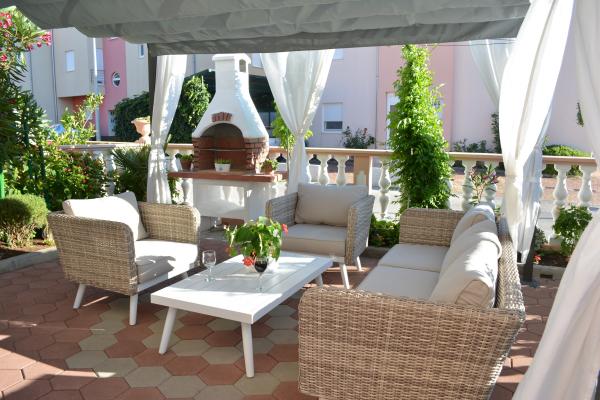 Beautiful apartment located in Vodice, heart of Dalmatian coast. Apartment has 2 bedrooms, living room, kitchen, bathroom and balcony and has enough space for family with kids or even larger group. Our terrace area planted with Mediterranean plants and flowers is something that will make you forget your way of life during period spent here. Lounge area is perfect place for you to sit, relax and enjoy with your family and friends at any time of a day. In case you feel home sick, free Wi-Fi (D: 30 / U: 5 Mbit/s), your private parking right next to garden along with 80 TV channels (HBO, Cinemax, Sports, Kids, ...) and lots of amenities will try to neutralize that feeling.