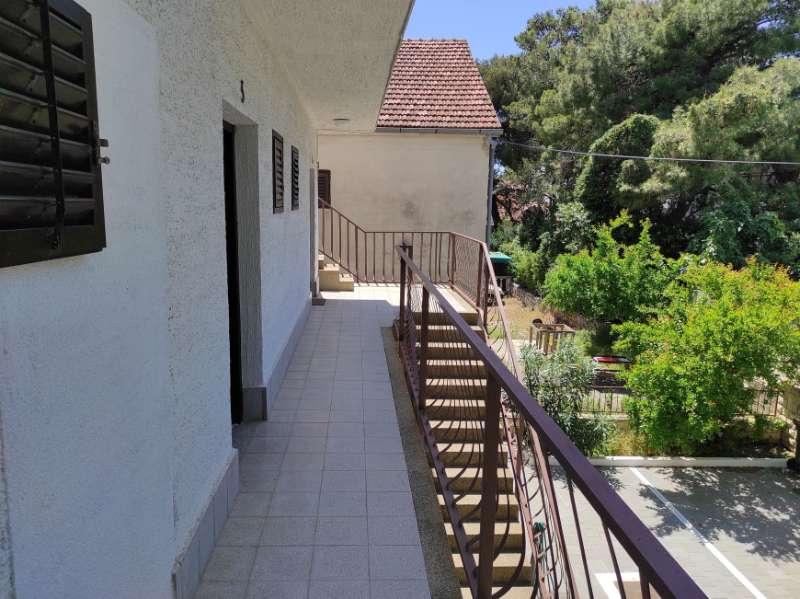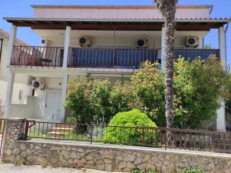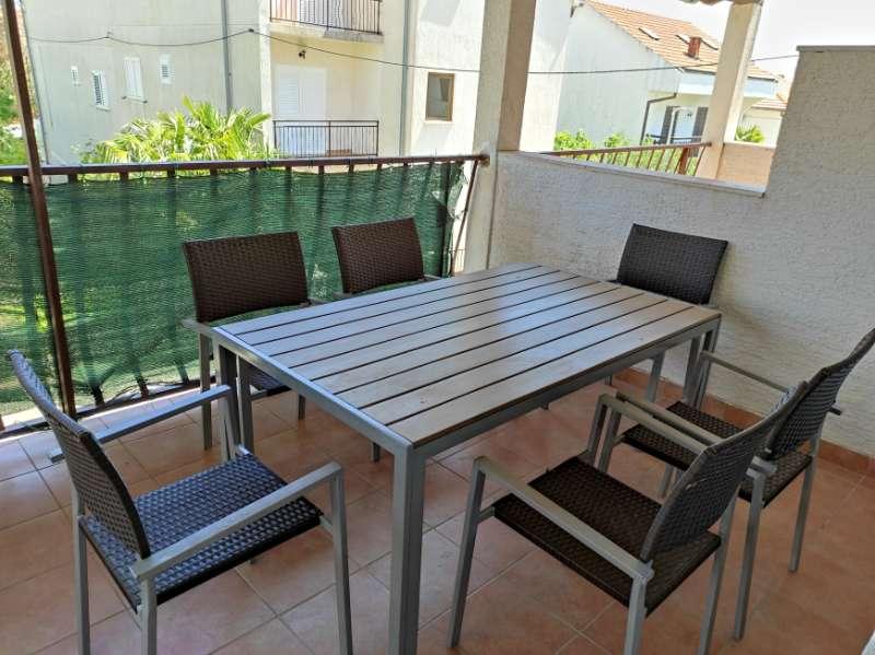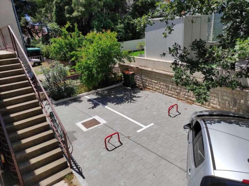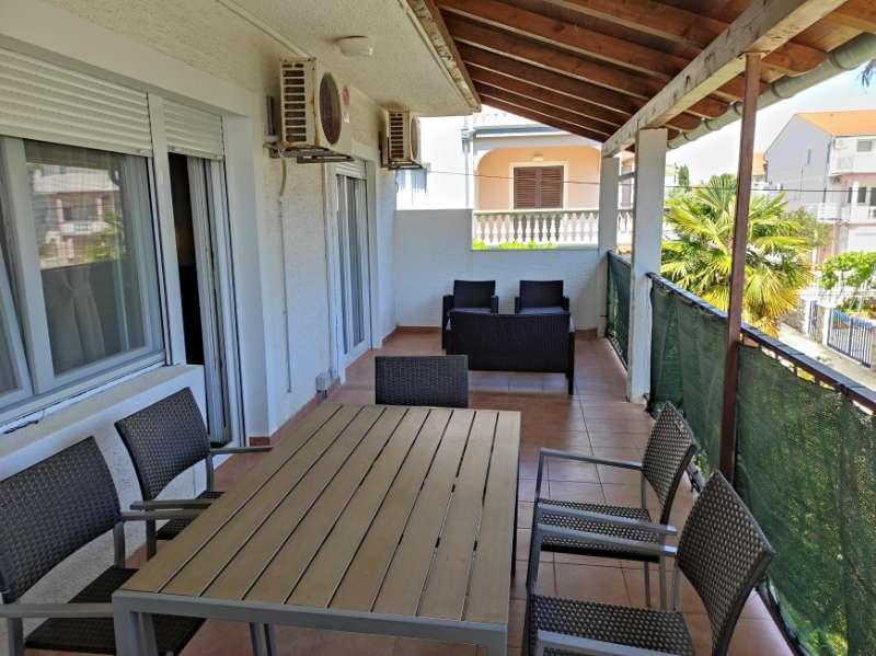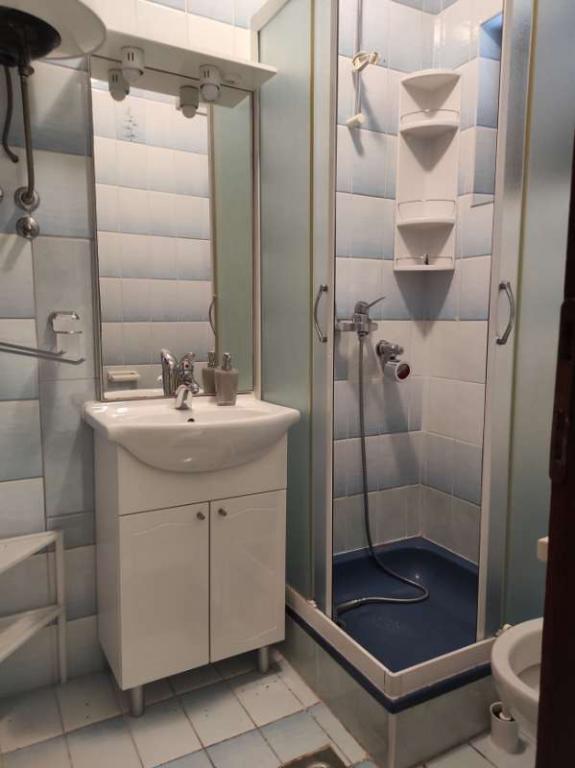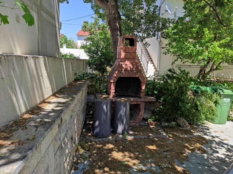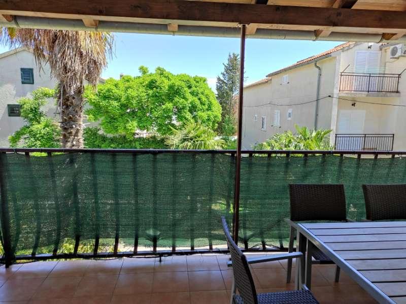 The apartment is in a quiet street with a covered terrace, equipped with 2 separate bathrooms, 2 showers and 2 toilets, kitchen, air conditioning, TV, wi-fi, washing machine and lounge on the terrace. In the yard there is a parking space and a barbecue. The apartment is close to Olympia Sky Hotel, shops, beaches and bakeries. The address is 16A from Split